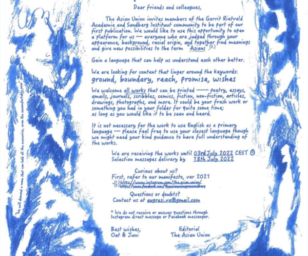 The Asian Union invites members of the Gerrit Rietveld Academie and Sandberg Instituut community to be part of our first publication.
