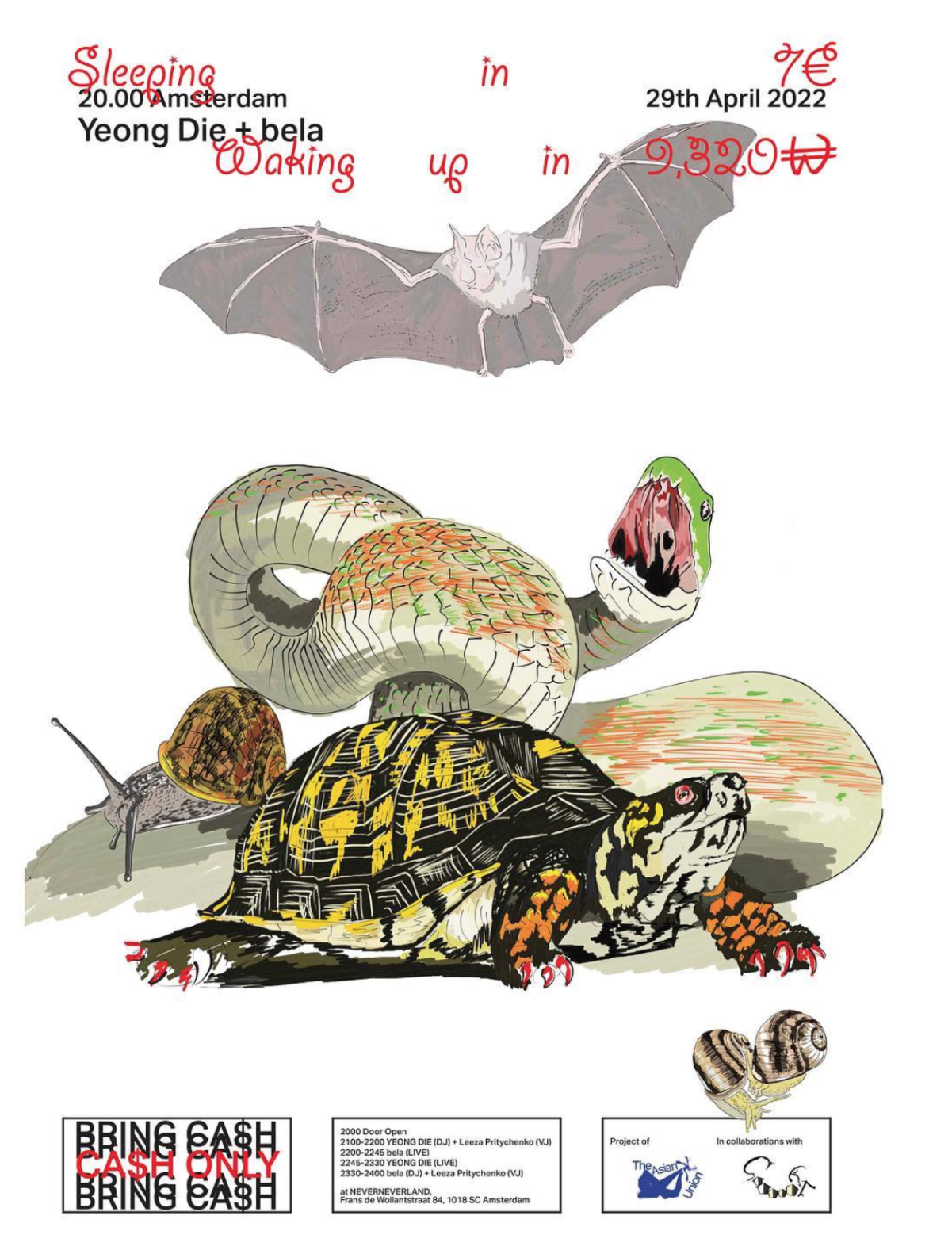 Snake and turtle woke up from their long winter sleep, while snail and bat are still a bit clumsy. It’s April 2022, the end of hibernation. Your body is heated up again, heart beats rising, warm breaths. Let’s dance; today is the first day of spring, and the last day of winter.