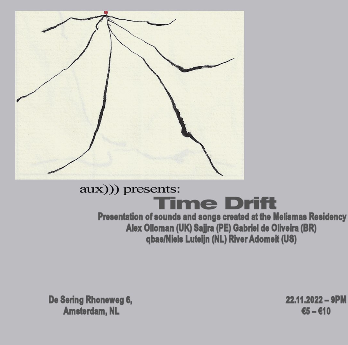 Join us next Nov 22 for Time Drift, a concert where Alex Olloman and Sjjra will present a series of new songs produced at the Melismas Residency accompanied by Gabriel de Olivera, Niels Lutejn and River Adomeit.