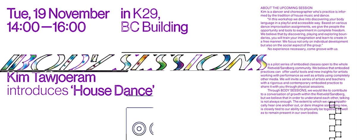 Bi-monthly movement classes open to the whole Rietveld/Sandberg community