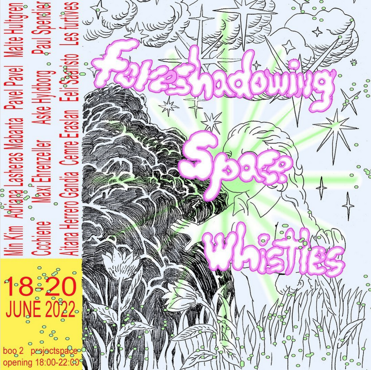 We would like to warmly invite you to Boo 2 on the 18th June for the opening of __☆__foreshadowing space whistles__☆__ where creatures on legs, arms or wings descend upon conductive surfaces and with swirling touches create technical drawings of a futuristic playground.