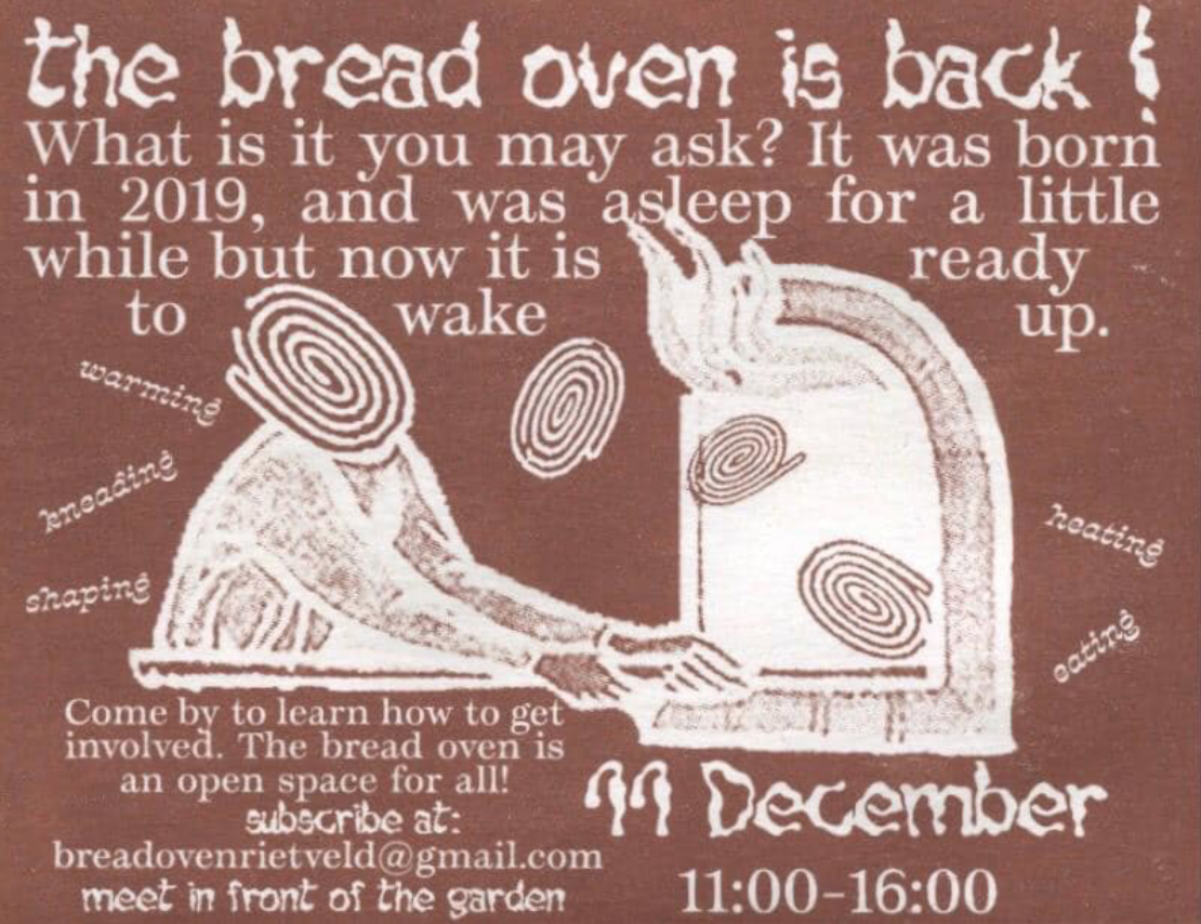The Bread Oven is a continuation of the work done by Rietveld alumni, Johannes Reisgl, Florian Lutz and Jakob Krinz. In 2019 they built the oven as part of their graduation project. With their approval, we, a group of five from the graphic design department, decided to reactive the oven and become its caretakers in May 2021.