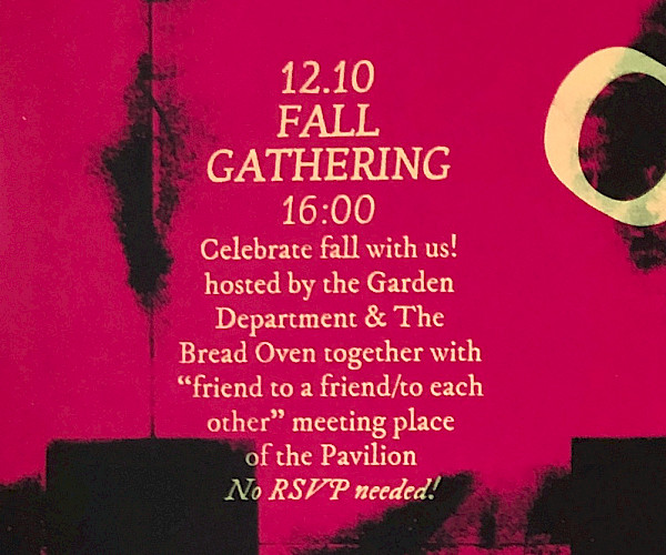 Hosted by the Garden Department & Bread Oven together with "friend to a friend/to each other" meeting place of the Pavilion.