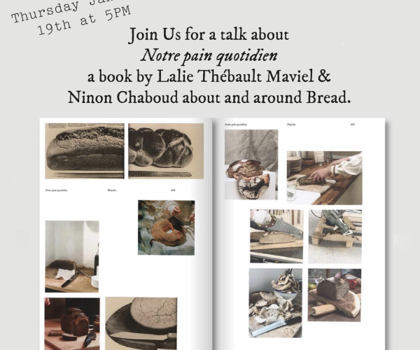 Join us for a talk about Notre pain quitidien A book by Lalie Théboult Maviel & Ninon Chaboud about and around bread. Thursday March 16th at 5PM in the Library