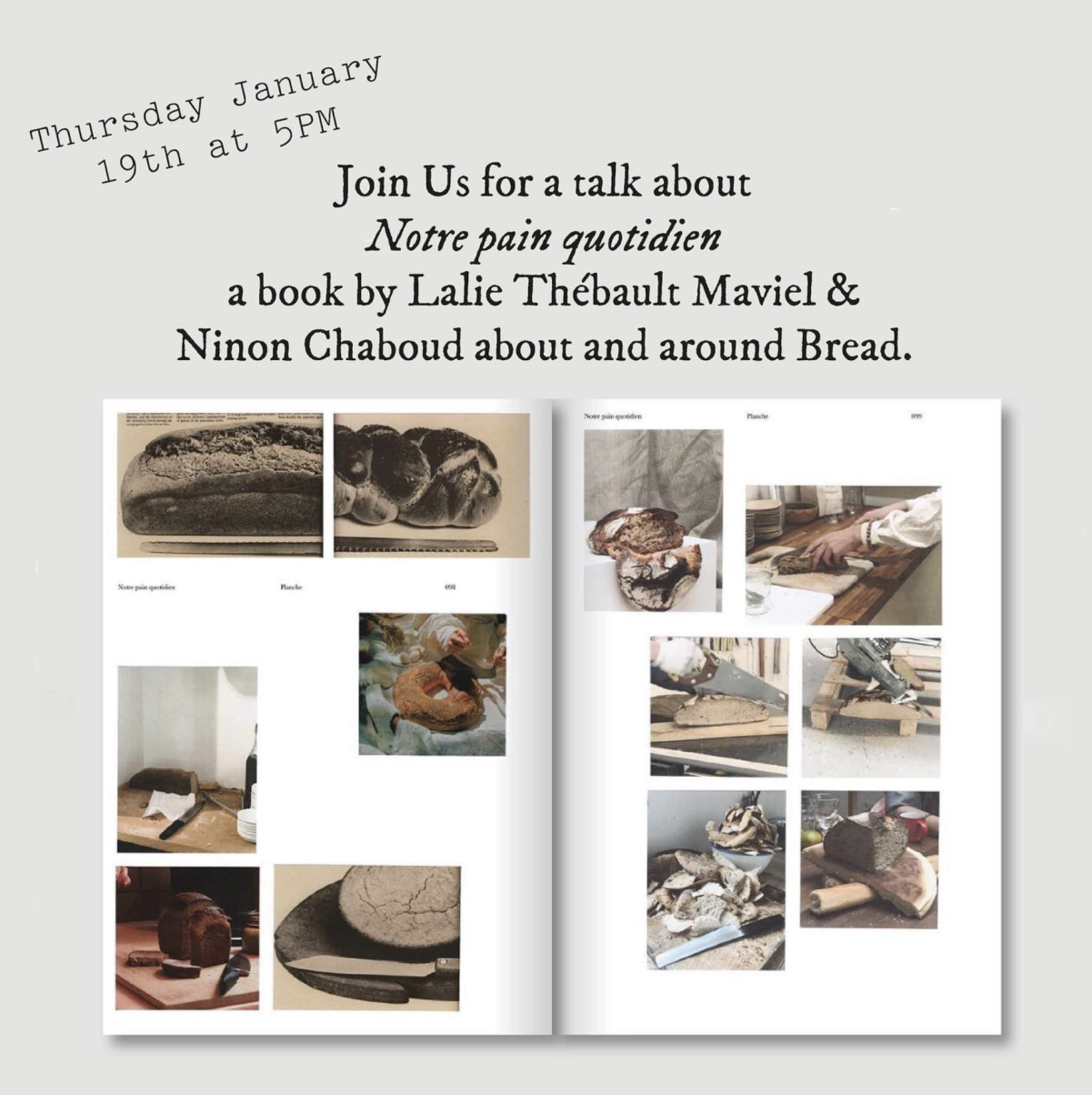Join us for a talk about Notre pain quitidien A book by Lalie Théboult Maviel & Ninon Chaboud about and around bread. Thursday March 16th at 5PM in the Library