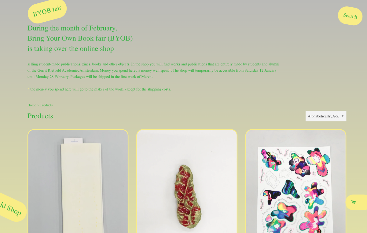 Bring Your Own Book fair has a temporary shop! Filled with 40+ student-made publications, zines, books and other objects from our students and alumni. And best of all: All your purchases will go directly to the maker! (ex. shipping costs)