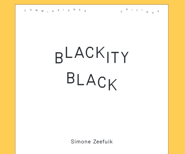 Comissioned Critique are delighted to announce a new essay: Blackity Black by Simone Zeefuik. "Five pictures from the moodboard of Blacker Blackness, the temporary course at the Sandberg Instituut in Amsterdam." Download and share!