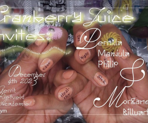 To kick off a new chapter as an extracurricular platform, Cranberryjuice collective is hosting a monthly lecture series relating to medical sexual inequalities and care practices. For their first event they will be inviting queer medical anthropologist Maya Lane together with published writer and researcher Cláudia Pallisé to join them for talks and discussions in the gym. The informal lecture series is open to everyone: specifically students from the Rietveld & Sandberg, but also alumni and any other people for whom it strikes curiosity or interest. Cranberryjuice cocktails will be served!