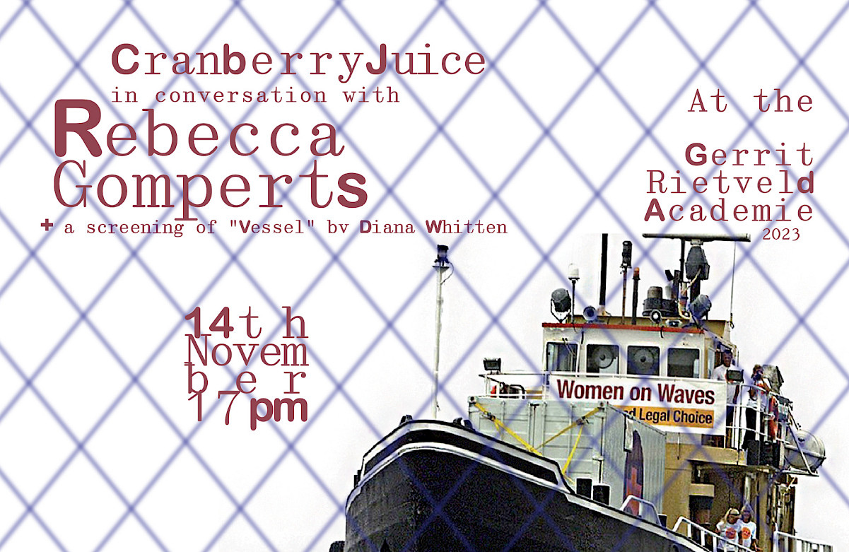 We are beyond excited to announce the next speaker for the Cranberryjuice in discussion series: Rebecca Gomperts! A Rietveld Academie alumni, the founder of Women on Waves, Aid Access and Women on Web - Rebecca is an innovative and heroic physician, artist and activist fighting to defend Women's rights to choose