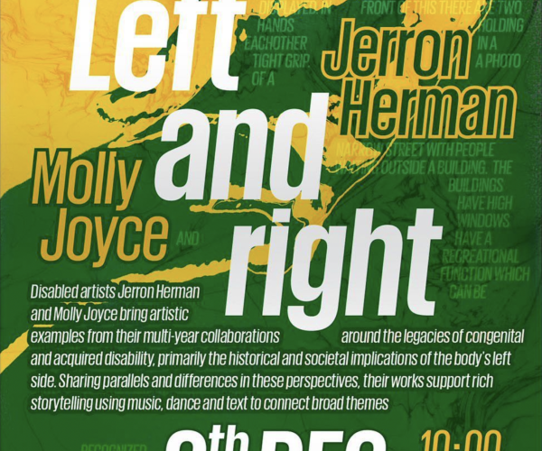 Crip the Curriculum is pleased to announce our next Lecture/Workshop. Left and Right: Disabled artists Jerron Herman and Molly Joyce bring artistic examples from their multi-year collaborations around the legacies of congenital and acquired disability, primarily the historical and societal implications of the body's left side.