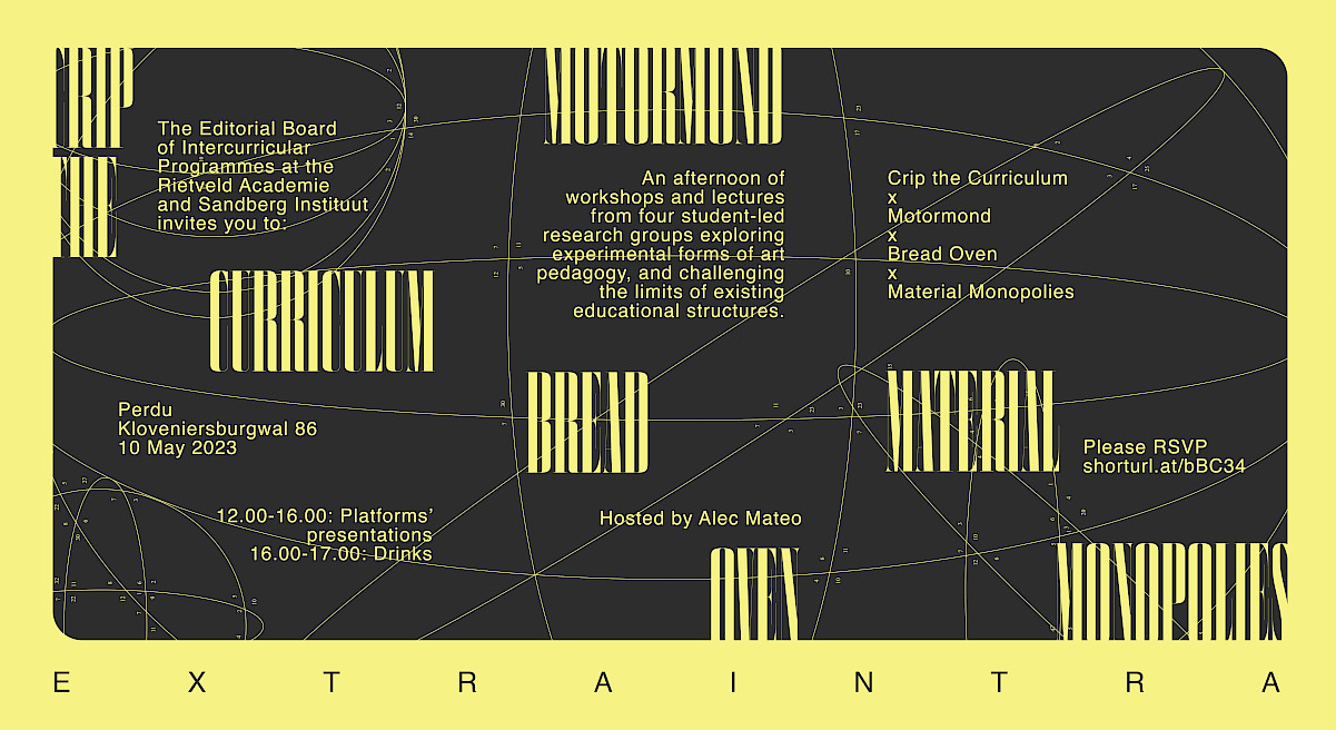 Extra Intra is a website initiated by the Editorial Board of Intercurricular Programmes at the Gerrit Rietveld Academie & Sandberg Instituut.