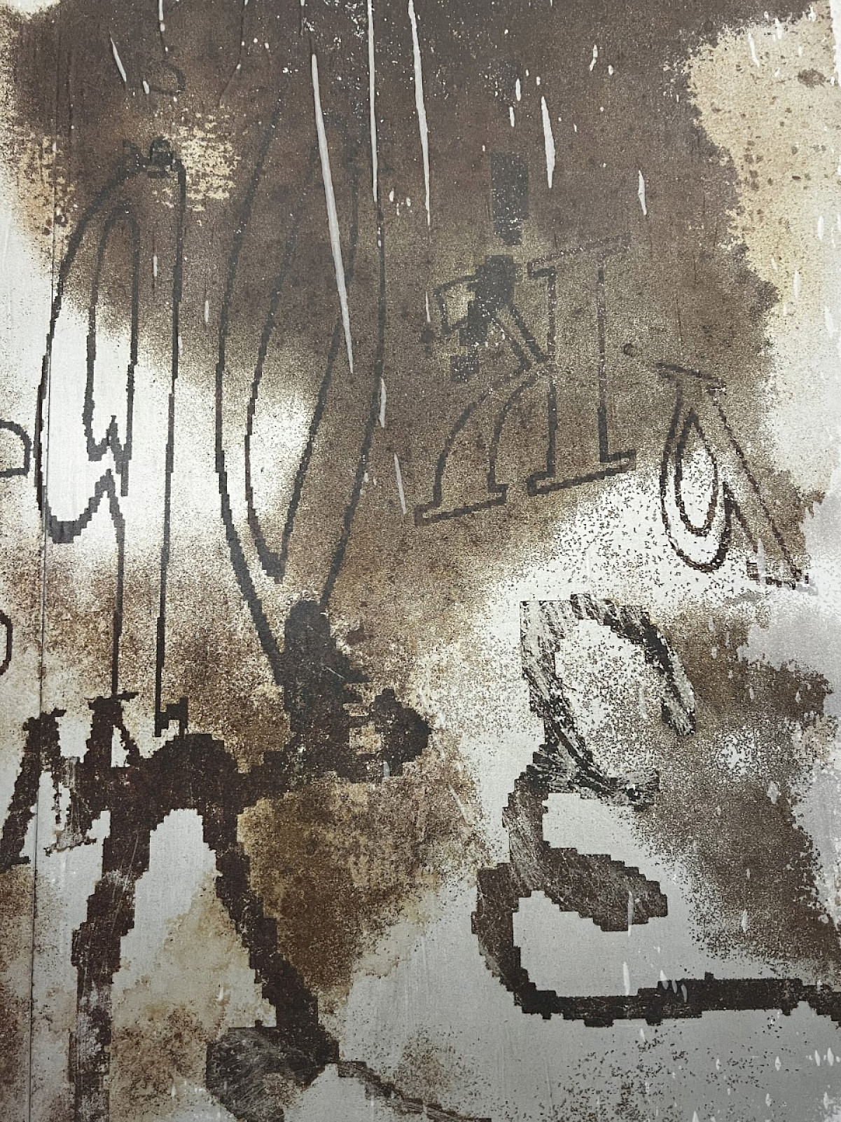 By using corrosion as a printing method, they rethink the cultural history of Cyrillic, the careless and coincidental manifestation of it, and its function in the present day.