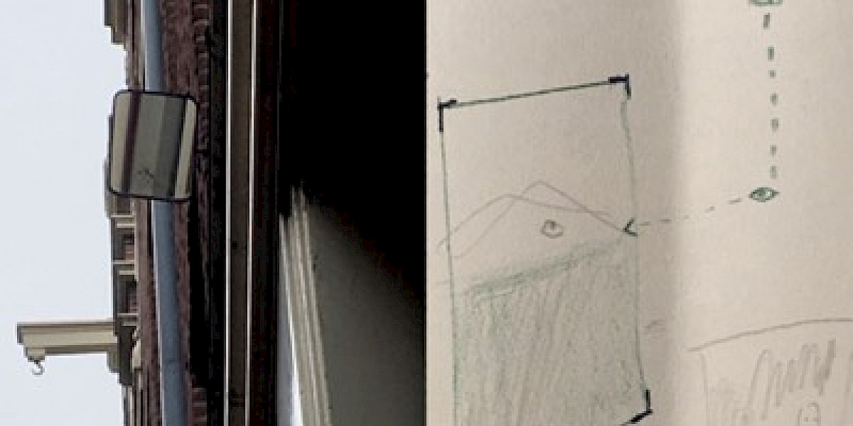 Here, gaze is questioned as both a material and a tool. Feel the materiality of your gaze, let it bump against the paved walls and streets. Let it bounce on the mirrored glass, rather than cross it. Let it get lost in the foggy depth of frosted glass.