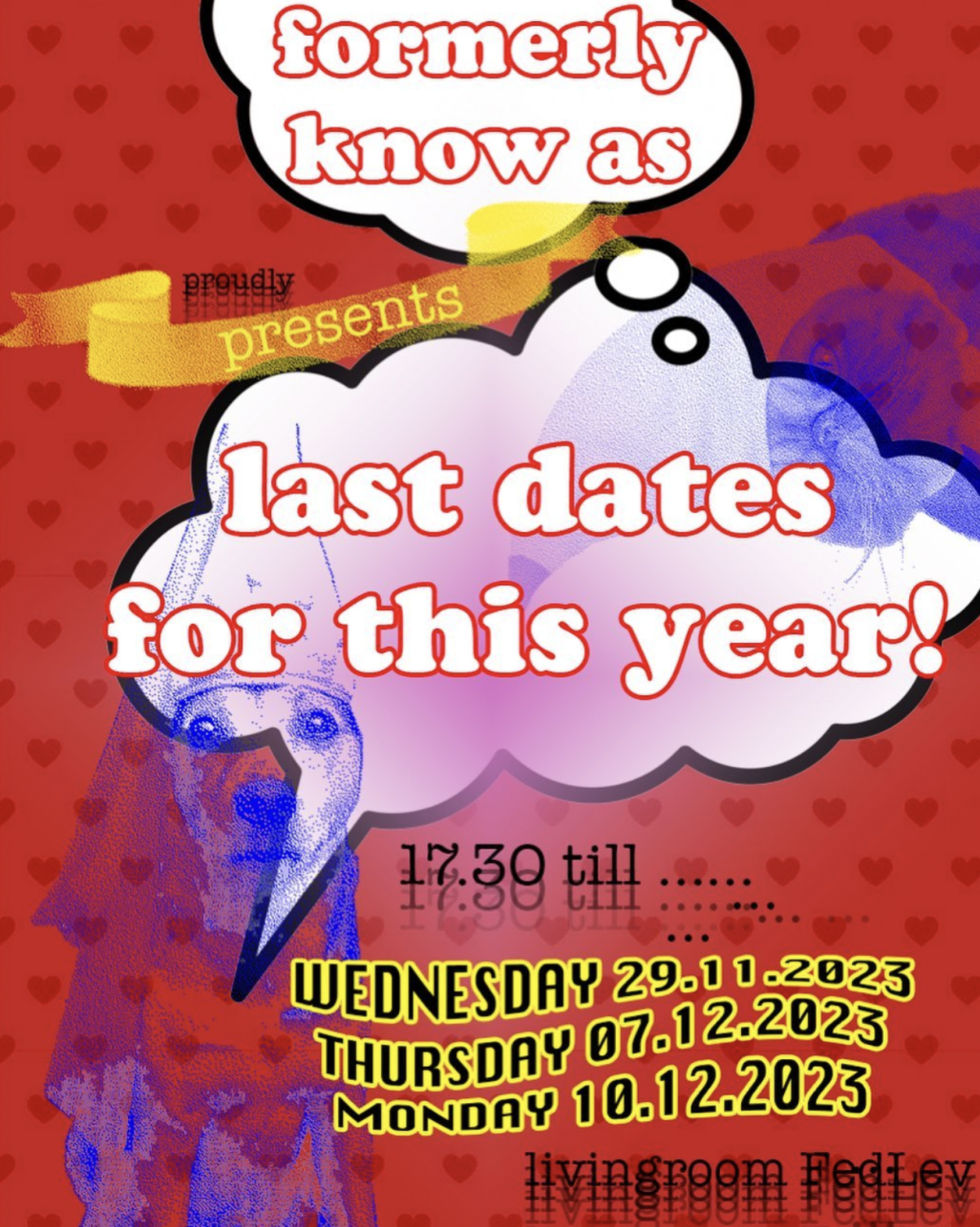 another beauty session in the livingroom Monday March 25 at 16.30; bring your texts, love letters and exes.