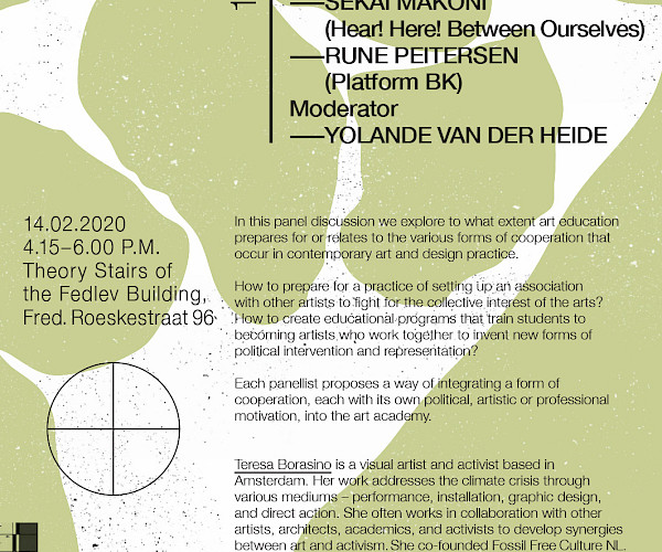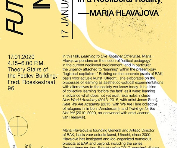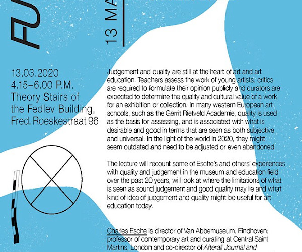 The editorial board of intercurricular programmes of the Gerrit Rietveld Academie presents a series of 5 lectures to discuss a number of educational questions relevant to the academy for art and design, and in anticipation of Future Practices.