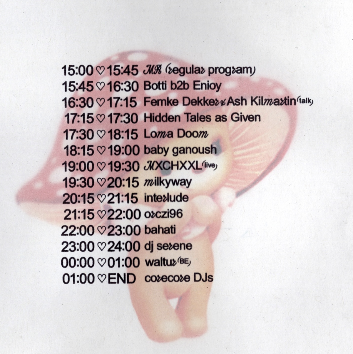 June 27: Full timetable* for the 12hr radio session of Mushroom Radio @ Garage Noord below.