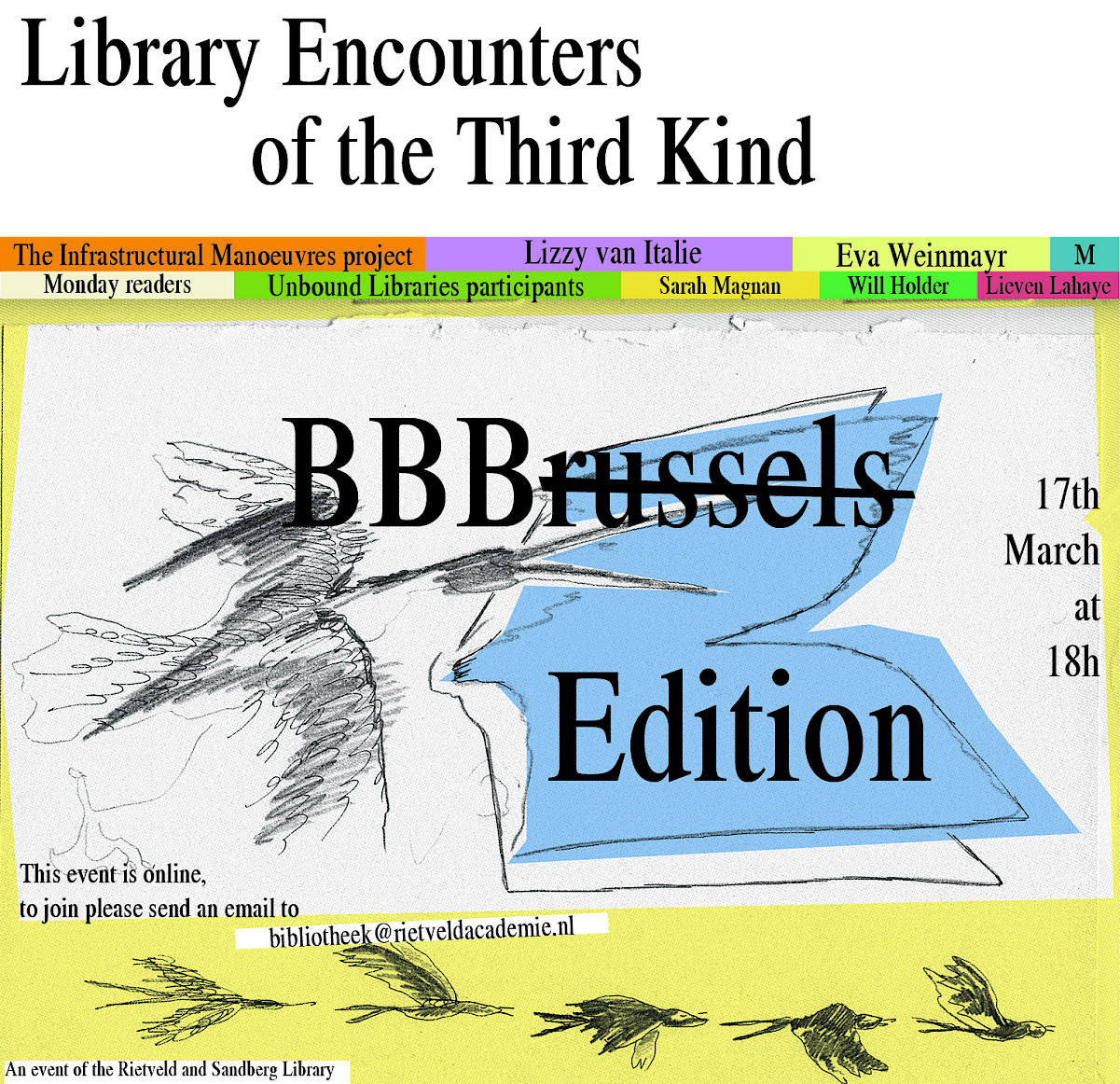 The event will be held online on a non-extractive video-and-audio call system, to join please send an email to bibliotheek@rietveldacademie.nl.