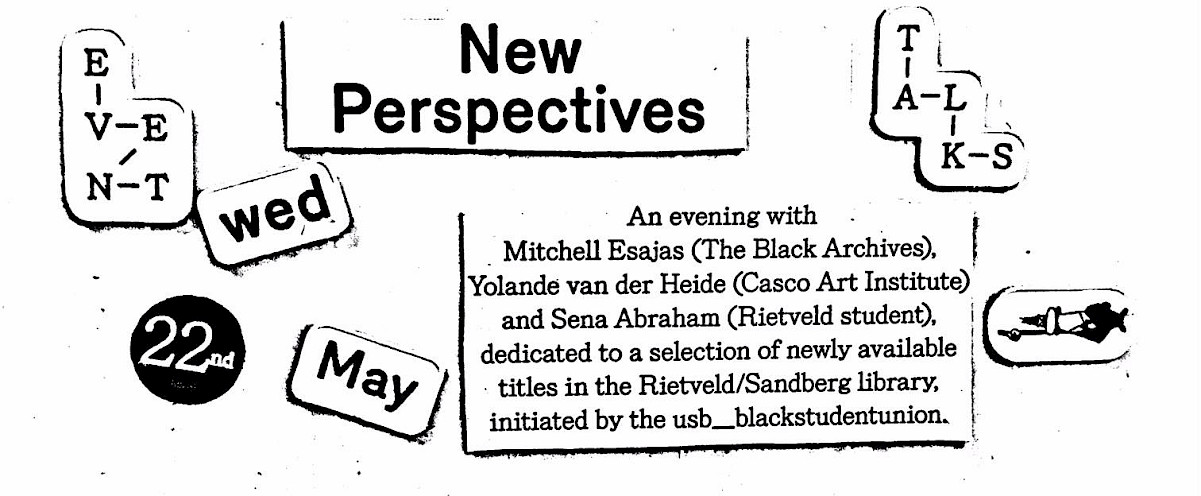 An evening with Mitchell Esajas (The Black Archives), Yolande van der Heide (Casco Art Institute) and Sena Abraham (Rietveld student), dedicated to a selection of newly available titles in the Rietveld/Sandberg library, initiated by the usb_blackstudentunion.