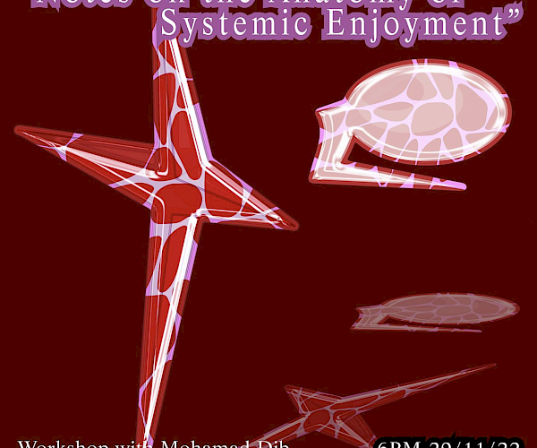 Sign up for *Notes on the Anatomy of Systemic Enjoyment* - a workshop with Mohamad Dib that will provide an overview of Lacan’s theory of the four discourses and will discuss its relevance for thinking about the relation between capitalist abstraction and affective economies.