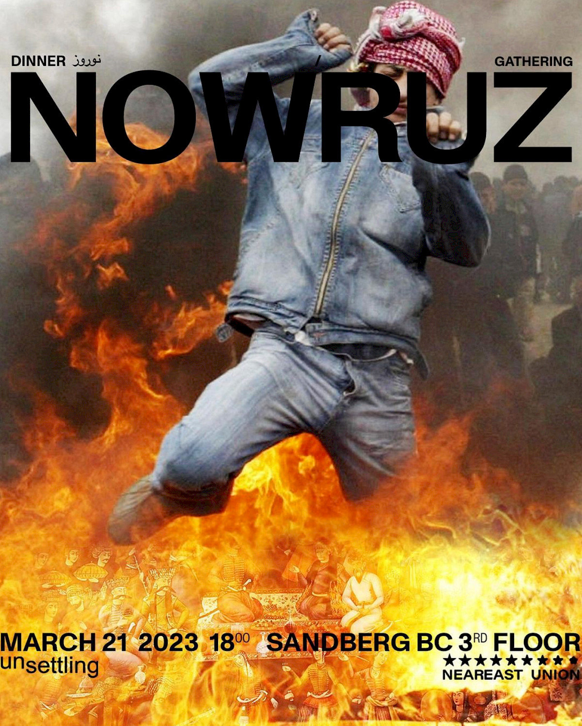 * Jumping over the fire is a traditional practice that occurs during the Persian New Year celebration, known as Nowruz. It is a symbolic gesture of purification and renewal, meant to help individuals start the new year fresh.