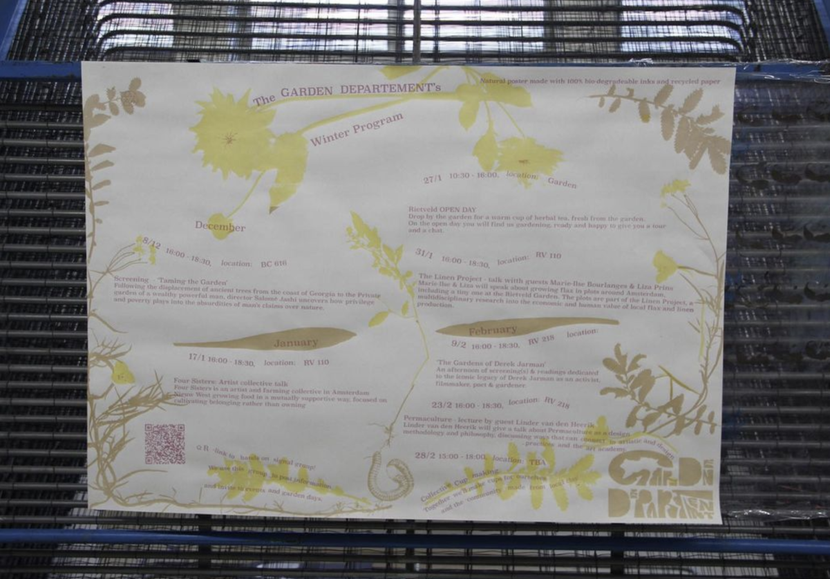 Over the next two semesters we will be organising a year-long Permaculture course that the Rietveld-Sandberg community can enroll on. We will also organise monthly events with invited guests, covering themes such as queer ecology, commons and communing, trauma-informed landscape design and medicinals for healing, social justice and climate change, inner and outer ecosystems, and quantum agriculture.