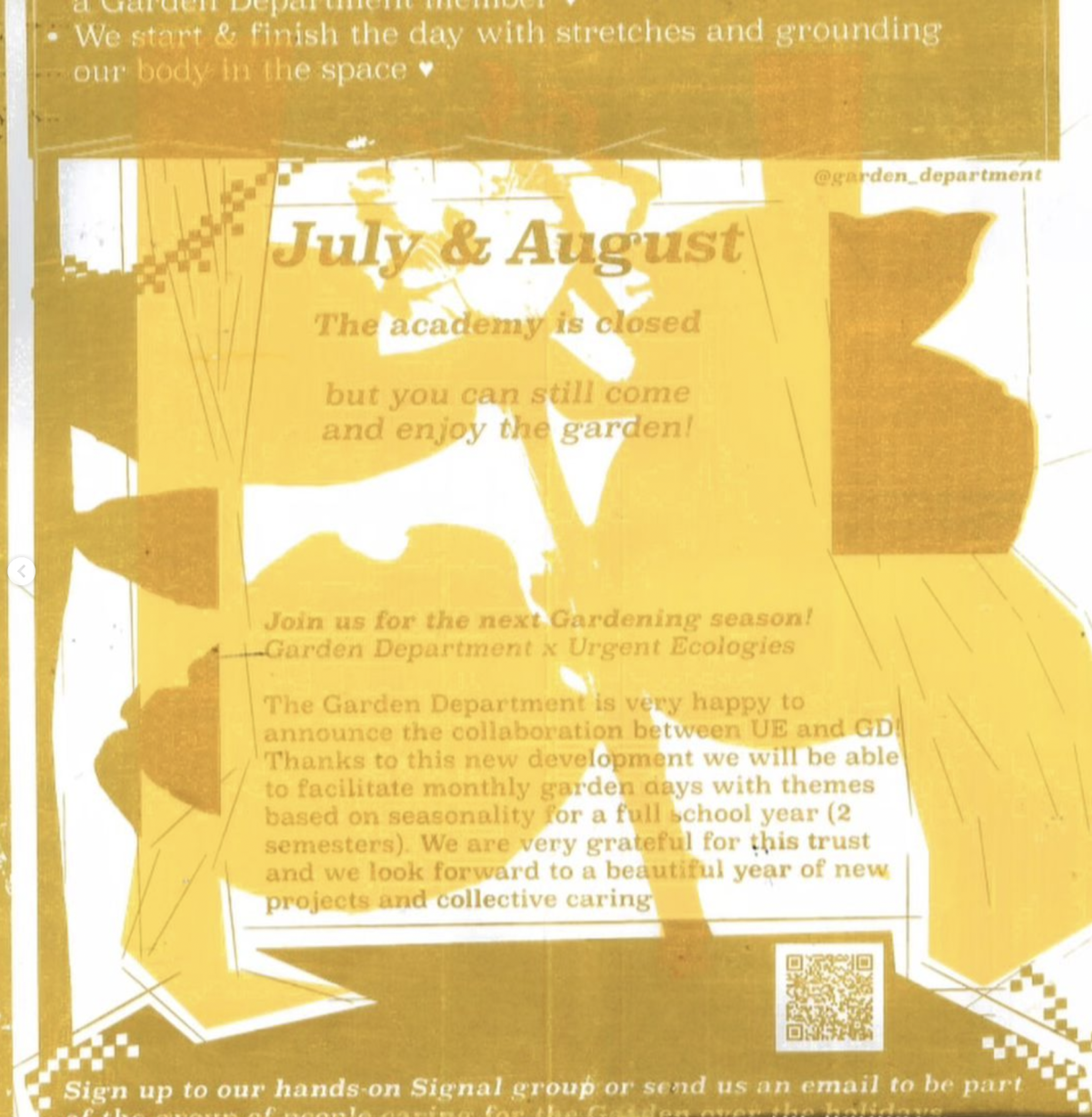 The Garden Department began a year ago in the form of a self-organised, student gardening initiative. We exist as an outdoor classroom/garden on the campus of the Rietveld Academie and Sandberg Instituut, open for all students and staff to use.