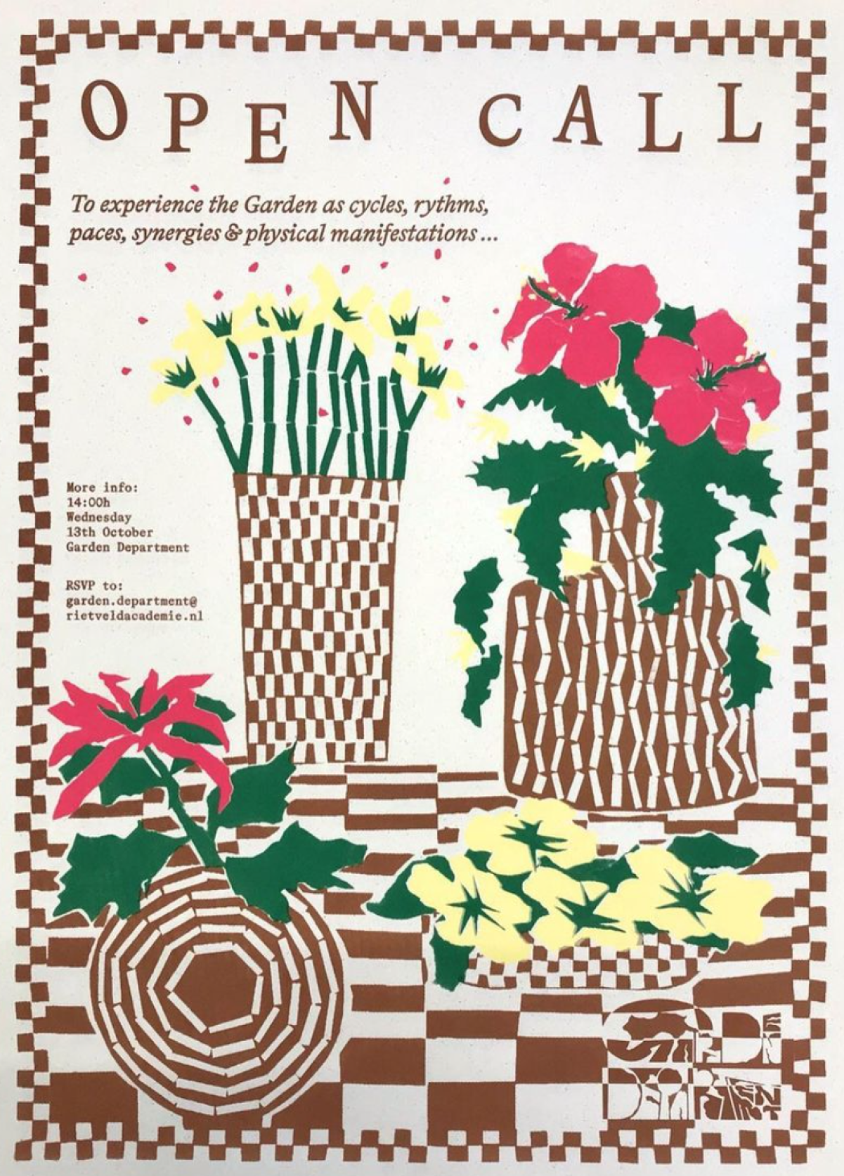 The Garden Department began a year ago in the form of a self-organised, student gardening initiative. We exist as an outdoor classroom/garden on the campus of the Rietveld Academie and Sandberg Instituut, open for all students and staff to use.