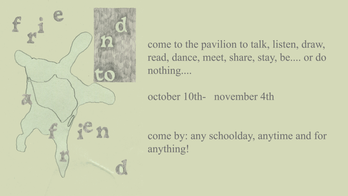 the pavilion will become a place where everyone can come by throughout the school days to do anything: talk, listen, draw, read, dance, meet, share, stay, be and do nothing.