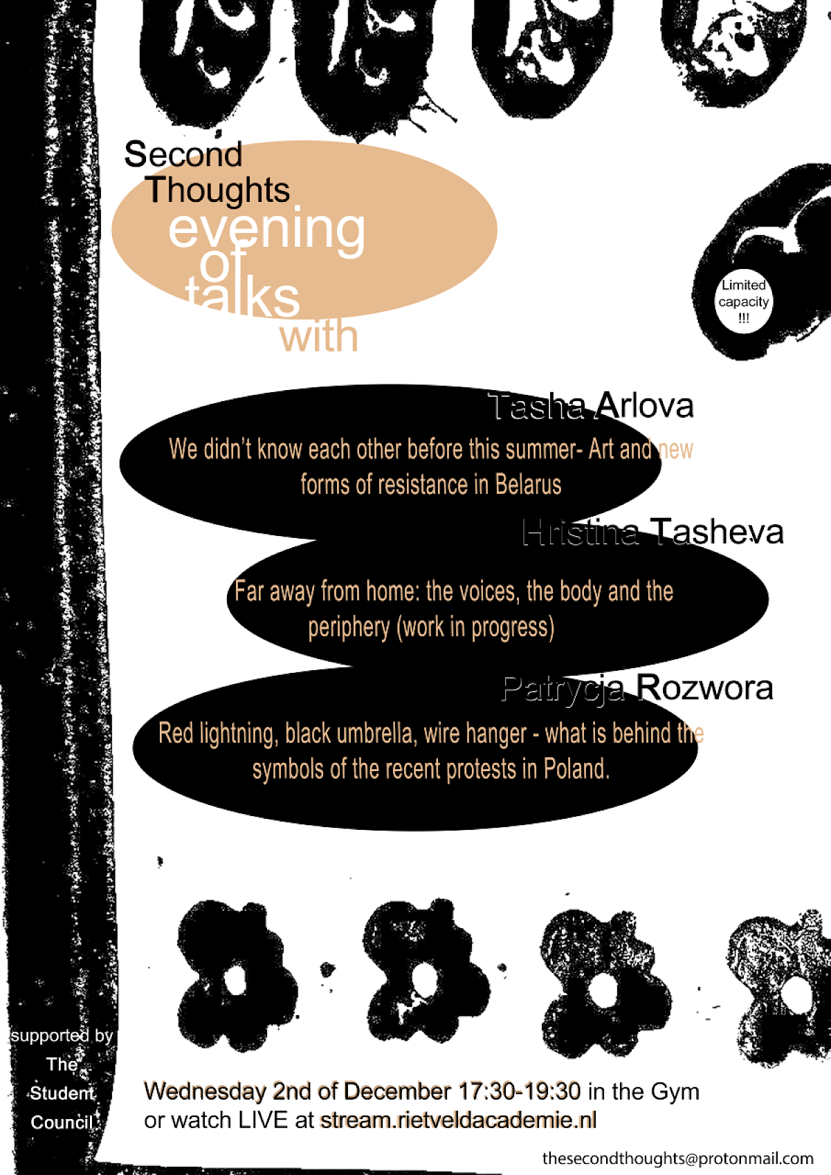 We are glad to invite you to the Second thoughts evening talk on Wednesday, December 2 at 17.30-19.30 at Rietveld Academie Gym.