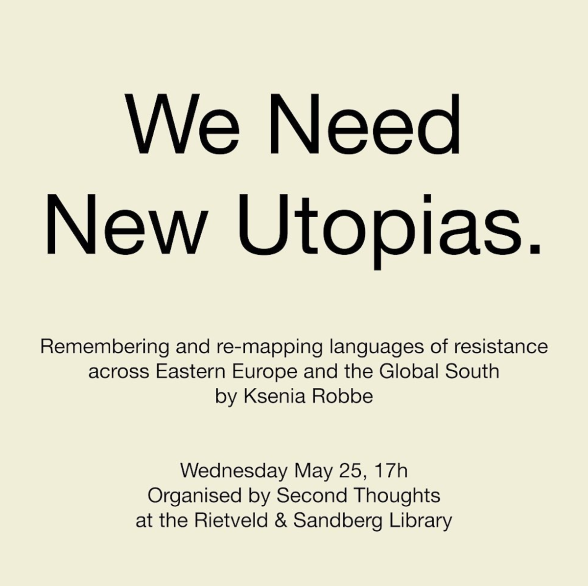 Today, we find ourselves in a world, in which the worst dystopias have come true. But the sense that the future – in light of the pressing economic, environmental, and political crises – is characterized by dystopian scenarios is not new; it has been with us for at least two decades, since the beginning of rapid globalization in the wake of the 1980-90s political ‘transitions.’ Looking back at this moment, we are compelled to ask: what has gone wrong – what has been overlooked by both optimistic and pessimistic perspectives on globalization, and how have insidious imperial and colonial attitudes survived and expanded in the wake of decolonization? Most importantly for our conversation, what role do art practices have to play in this context? Ksenia Robbe's talk will approach these questions by considering what artists and intellectuals from Eastern Europe and the Global South learn from each other, looking at the sites of experience where new languages of resistance can develop.