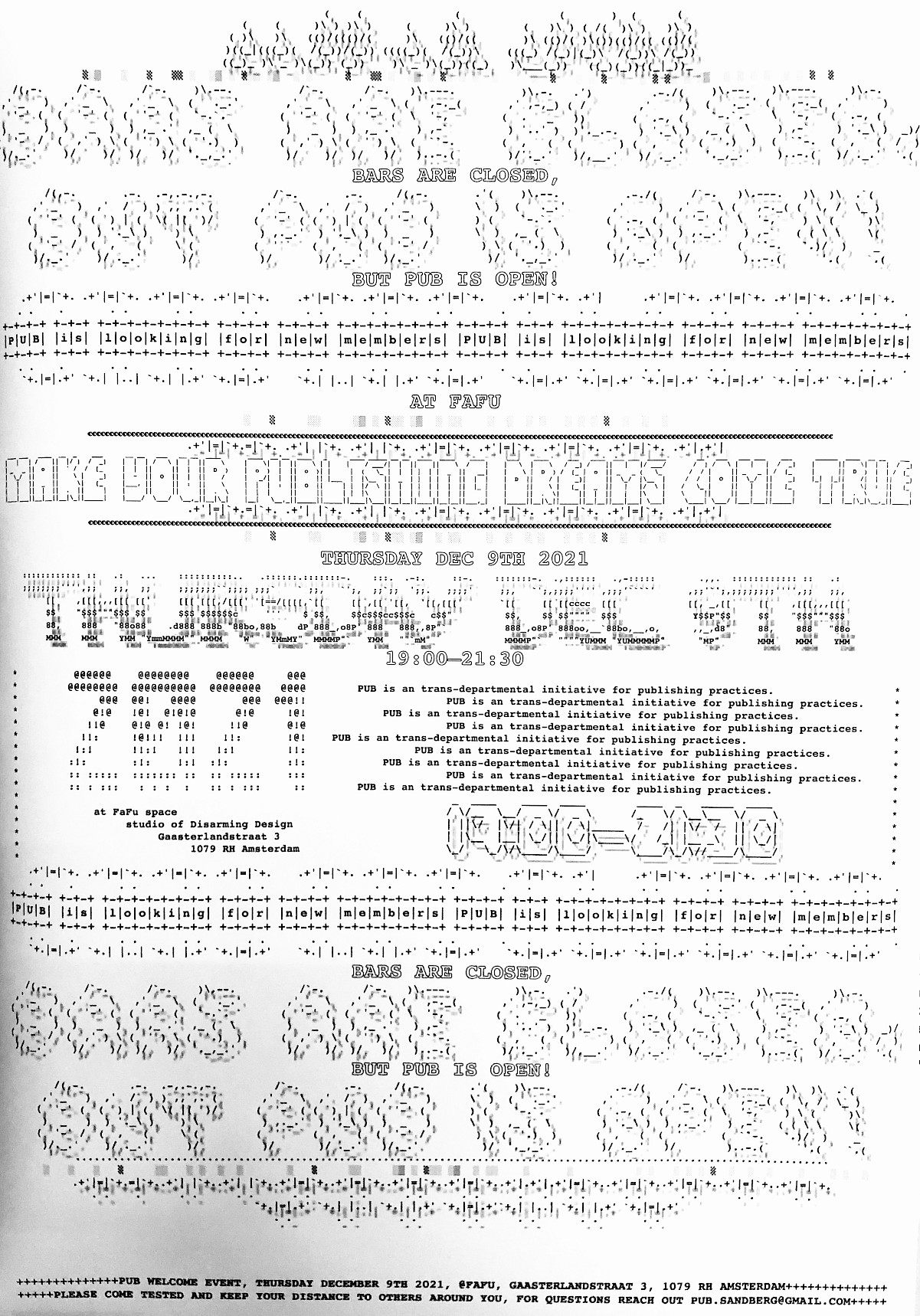 PUB is an interdisciplinary initiative by students of the Sandberg Instituut: a group of artists, writers, editors and designers who aim to structure and establish a publishing practice at their school.