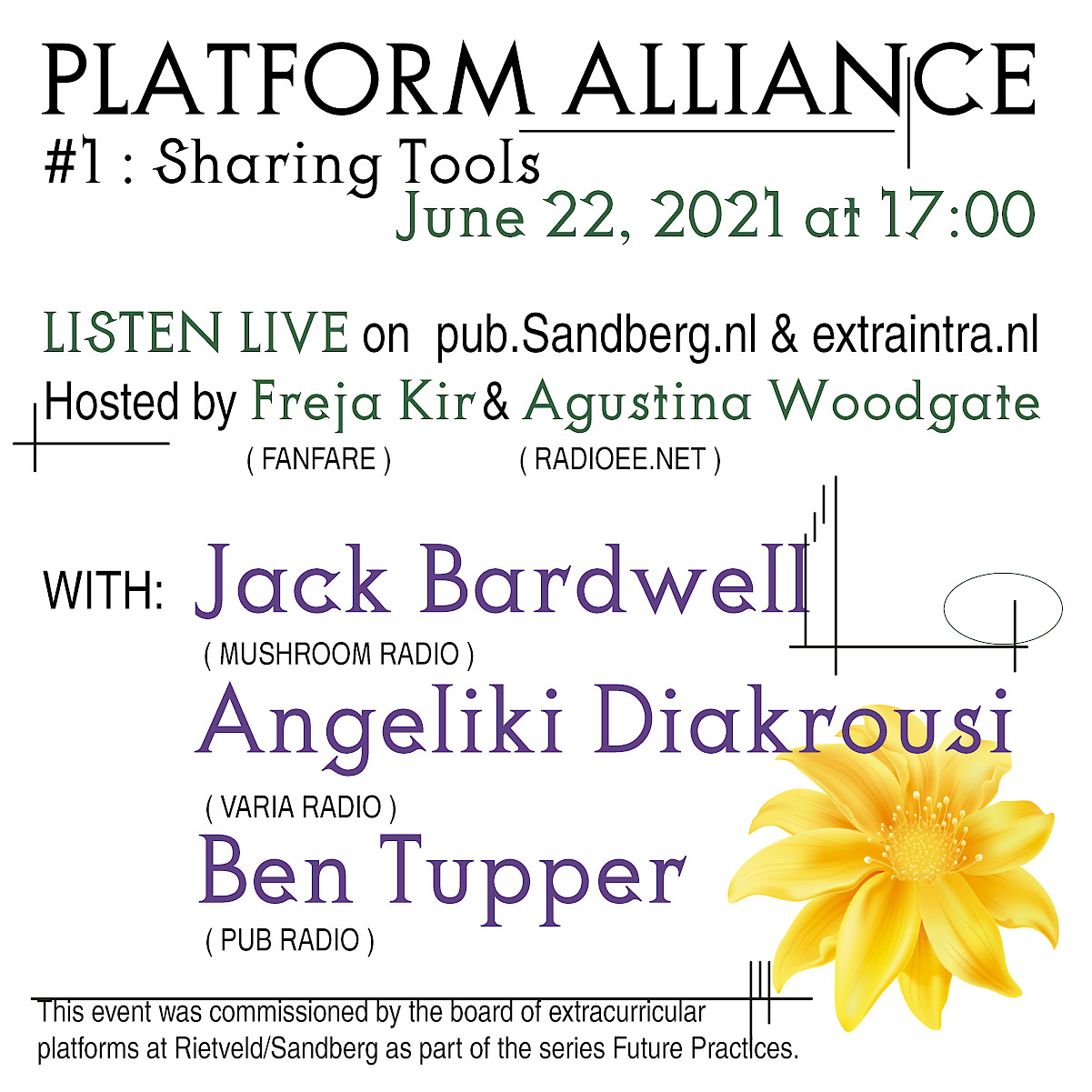 This event was commissioned by the board of extracurricular platforms at Rietveld/Sandberg as part of Future Practices. After the live broadcast, the conversation will be available on pub.Sandberg.nl & extraintra.nl