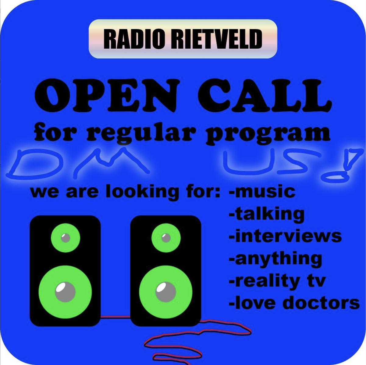 We are reviving Radio Rietveld and we want to curate a regular program! meaning (bi)-weekly. We are looking for people to fill timeslots. Anything goes, no experience needed.