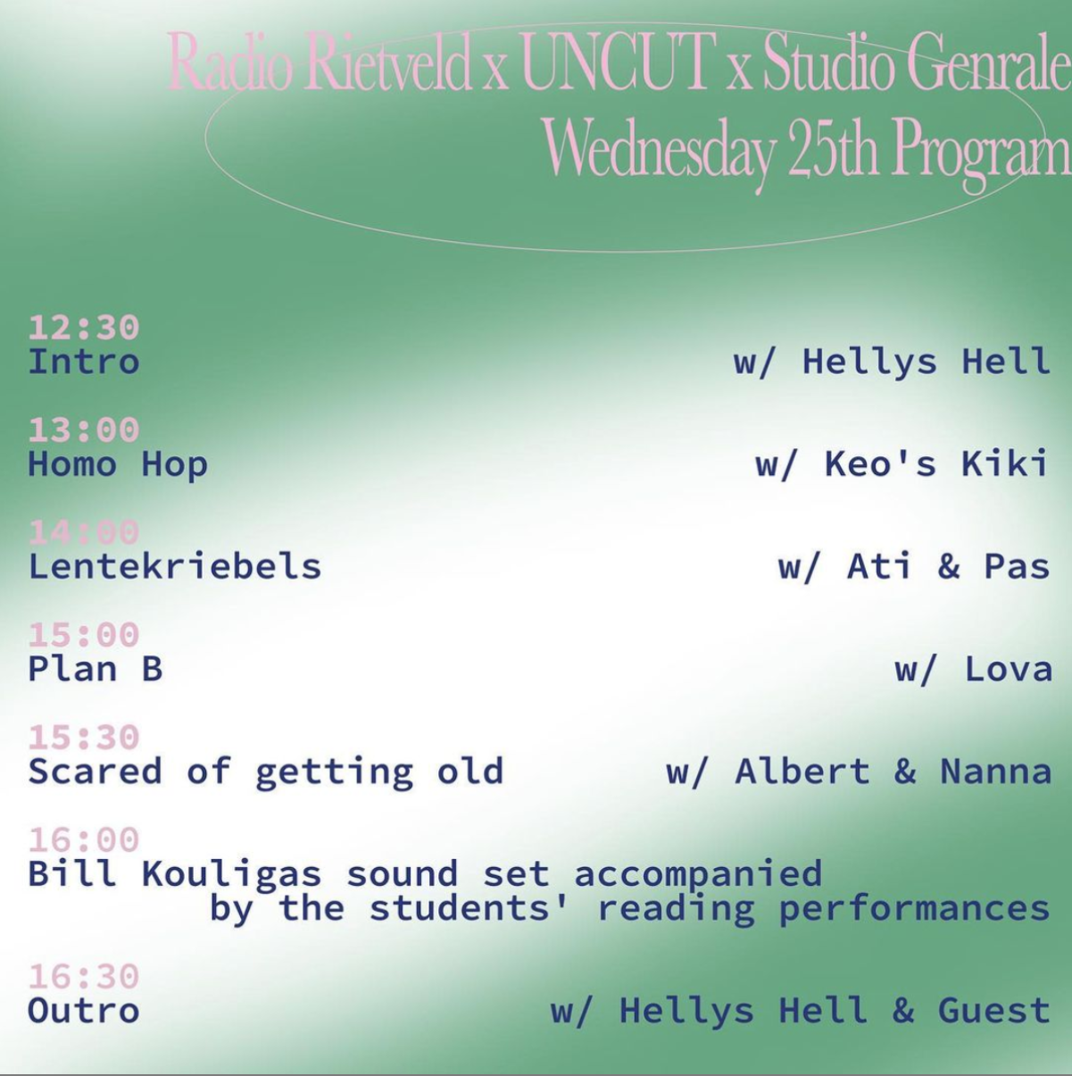 Radio Rietveld x UNCUT x Studium Generale Wednesday March 25th Program