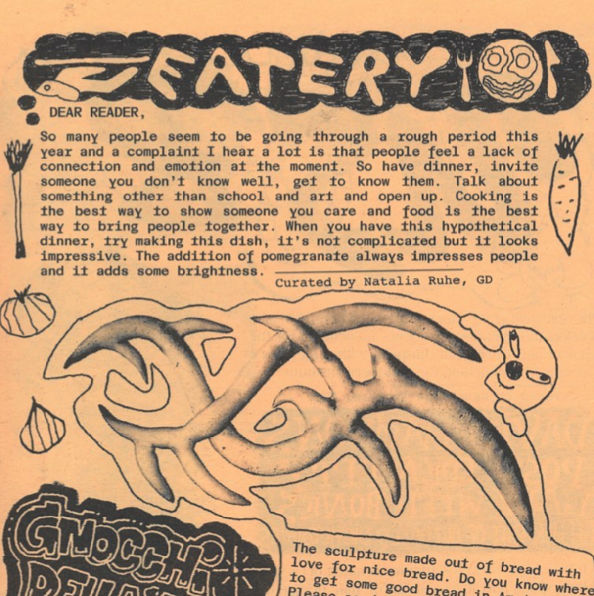 The Eatery section of the 4th Edition of the Rietveld Journal is open for submissions again! Feel free to submit anything relating to food, cooking, eating, rituals of the meal. Anything from recipes, reviews, poetry to drawings or photography. Everything is welcome!