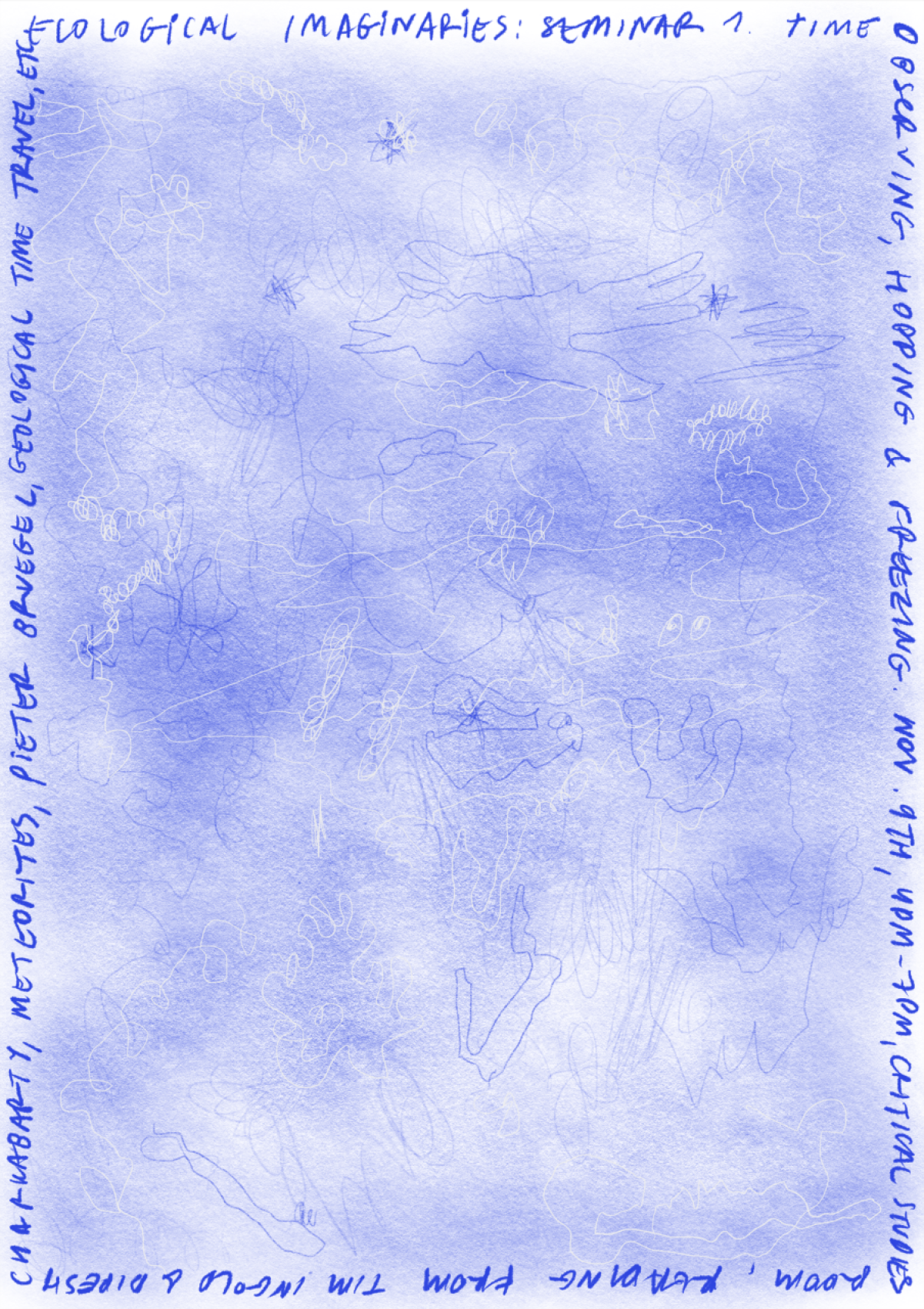 This year, Critical Studies research fellow Olya Korsun organises a series of seminars to collectively map out and question the contours and layers of ecological imaginaries through the study of eco-critical theory and experimental/queer/world cinema. In the first meeting, we will attempt to untangle the multiple temporalities of ecological imaginaries – ‘coexisting, juxtaposed, and in global harmony’*. The seminar will include reading together on the temporality of landscape from Tim Ingold and Dipesh Charkabarty and watching bits from both documentary and fiction about time-travellers. Be prepared for the encounters with meteorites, Pieter Bruegel the Elder, geological time and sound anomalies echoing from the deep past.