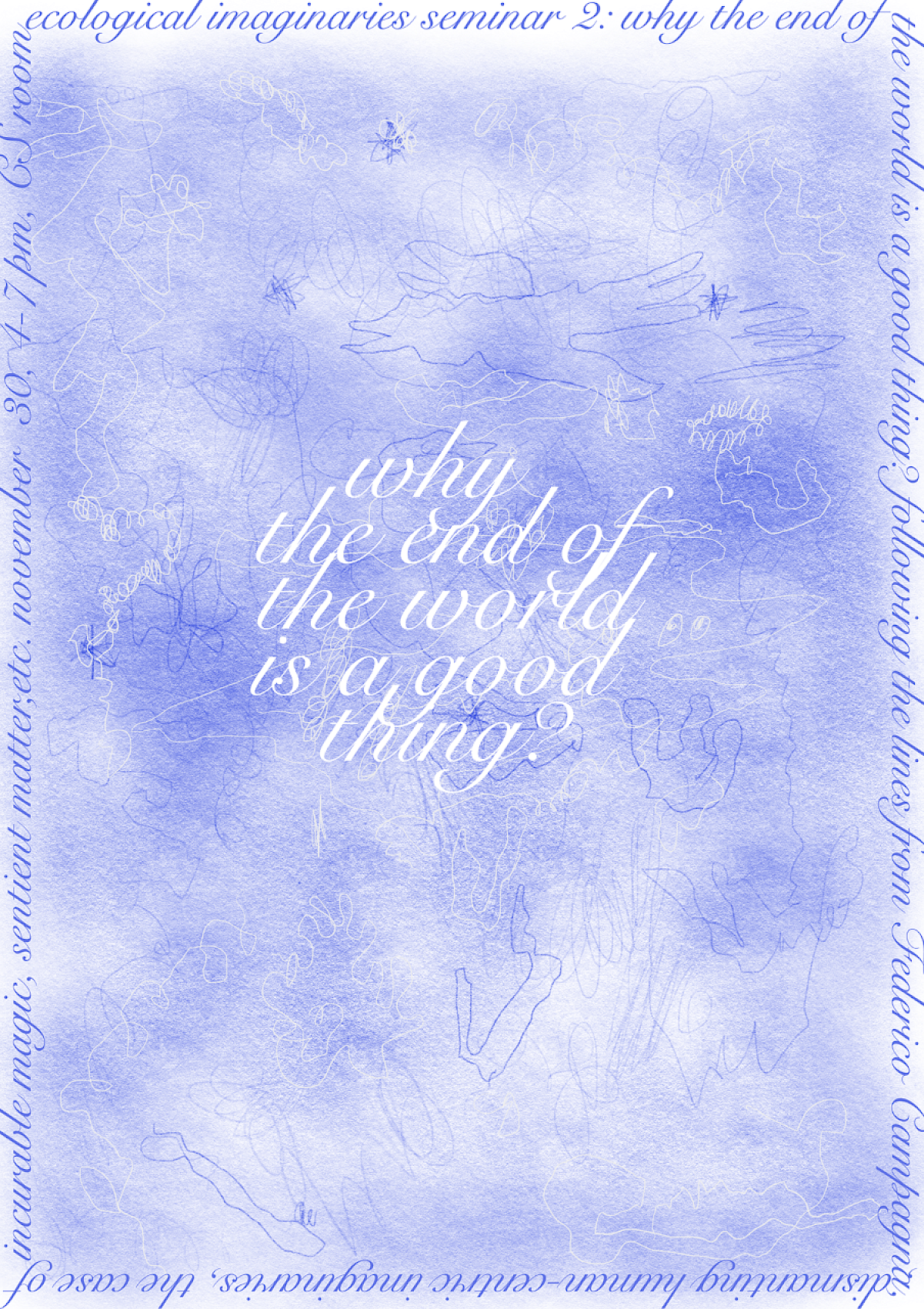 What if instead of imagining new worlds we could learn to imagine the existing ones differently and celebrate the coming-to-an-end of human/language/Western – centred imaginaries?