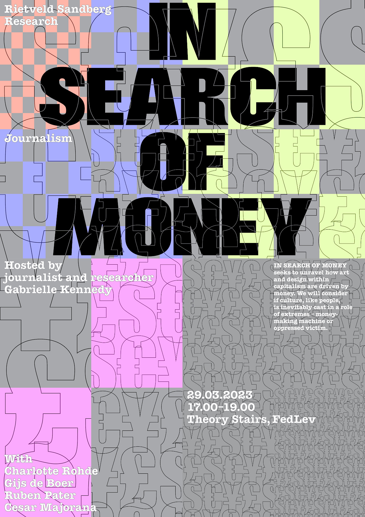 IN SEARCH OF MONEY seeks to unravel how art and design within capitalism are driven by money. We will consider if culture, like people, is inevitably cast in a role of extremes - money-making machine or oppressed victim.