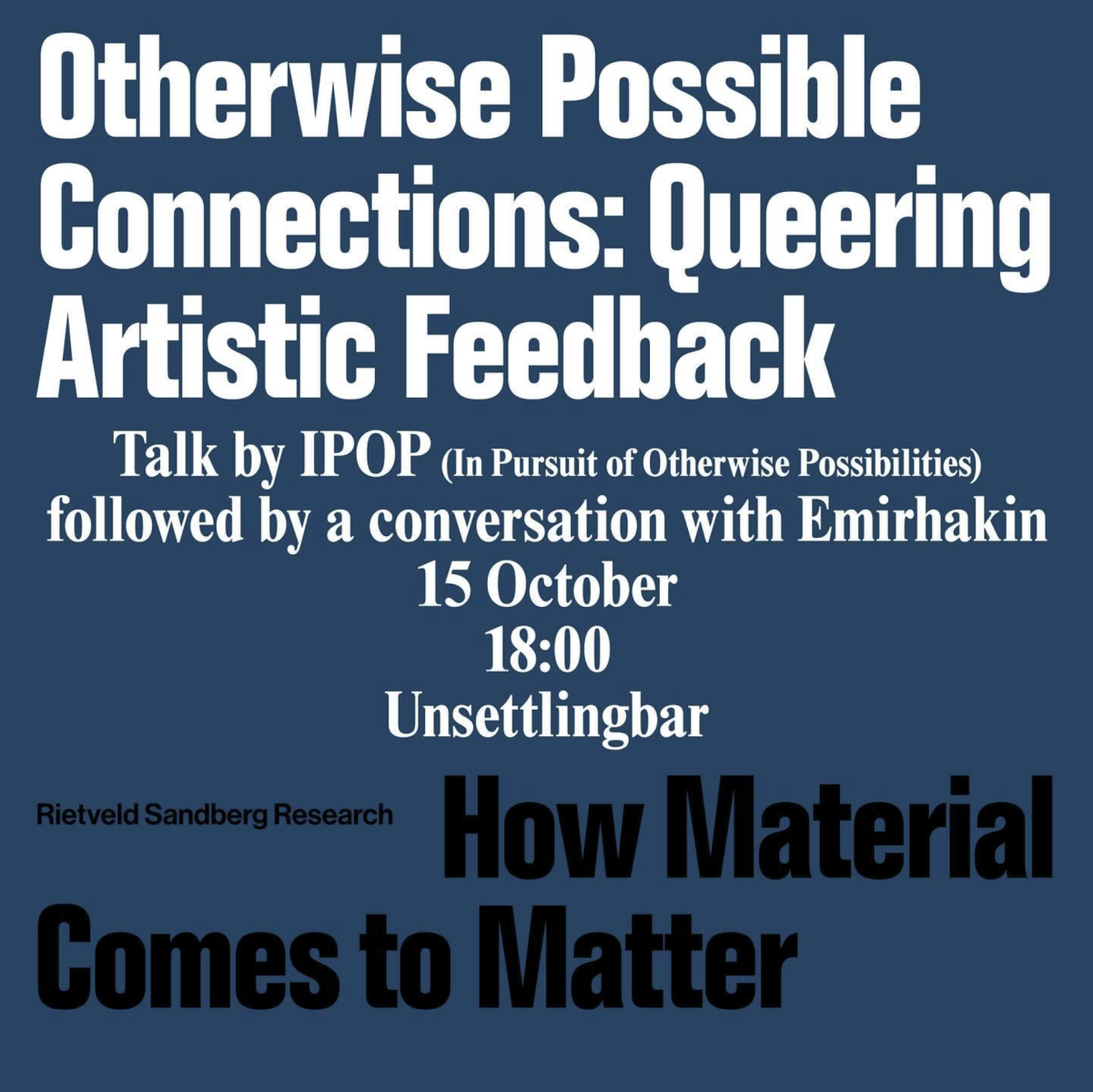 Participation: Reservation only, max. 15 participants each session. Reserve a spot through eventbrite links below. Note it's for students of Rietveld/Sandberg/Personnel only.