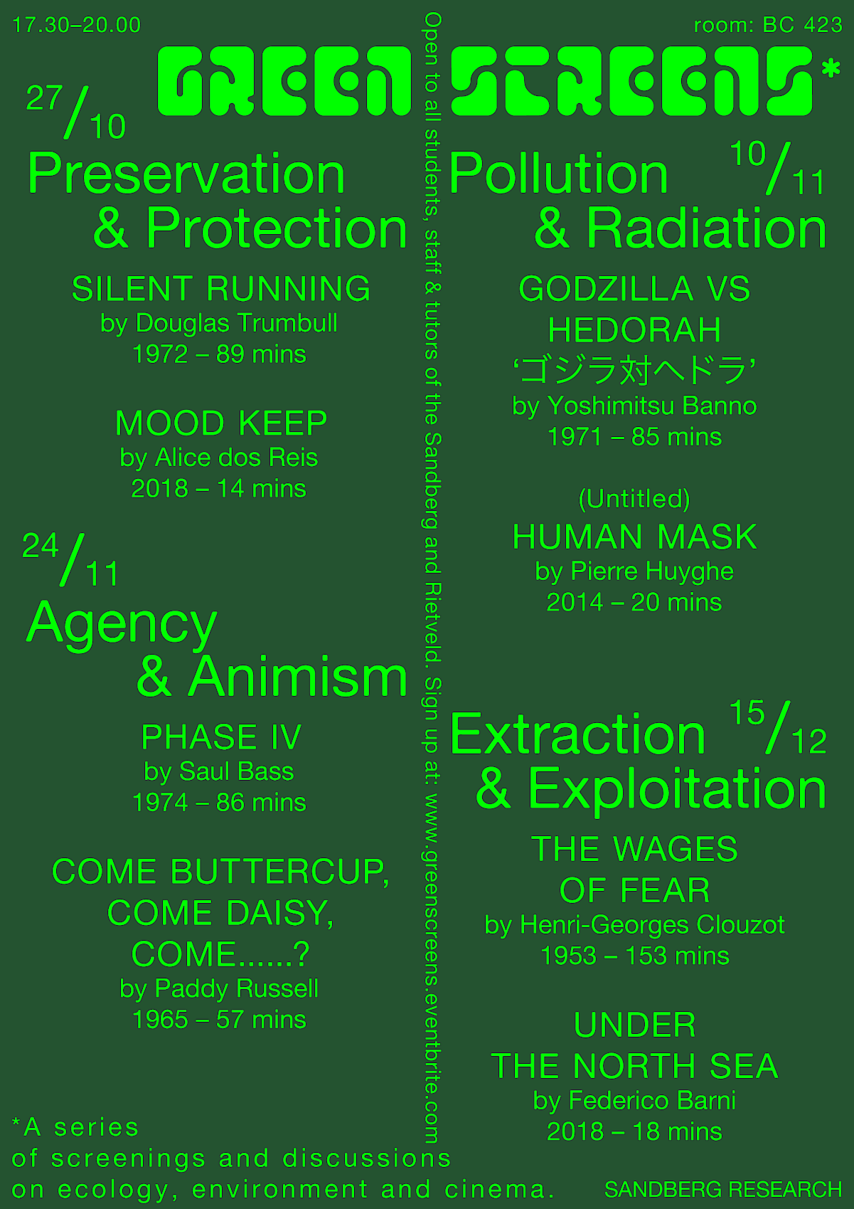 @5:30 PM, join us for an evening of screenings and discussions on ecology, environment and cinema. Open to students, staff, graduates and friends.