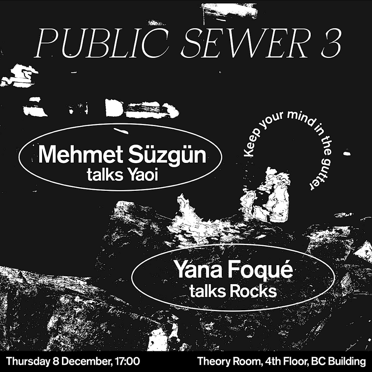 Public Sandberg presents its monthly series of talks—PUBLIC SEWER—where guests are invited to speak about the strange things building up in the margins of their creative practices. For our third edition, we’re very excited to welcome Mehmet Süzgün, artist and author, who will be speaking about Yaoi, and Yana Foqué, director of Kunstverein, who will be speaking about Rocks.