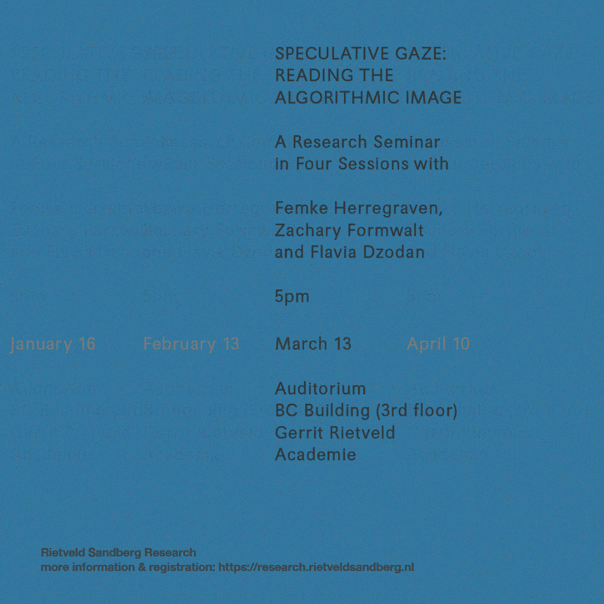 This seminar is a space for shared inquiry, diverse methodologies, and interdisciplinary dialogue. Through our explorations, we hope to challenge traditional notions of intentionality, and what it means to engage with an image that resists human-centric meaning. In Speculative Gaze, we hope to create a collective, reflective space where algorithmic images are not only analyzed but are also seen as mirrors, reflecting back our own assumptions, insights, and speculative connections.
