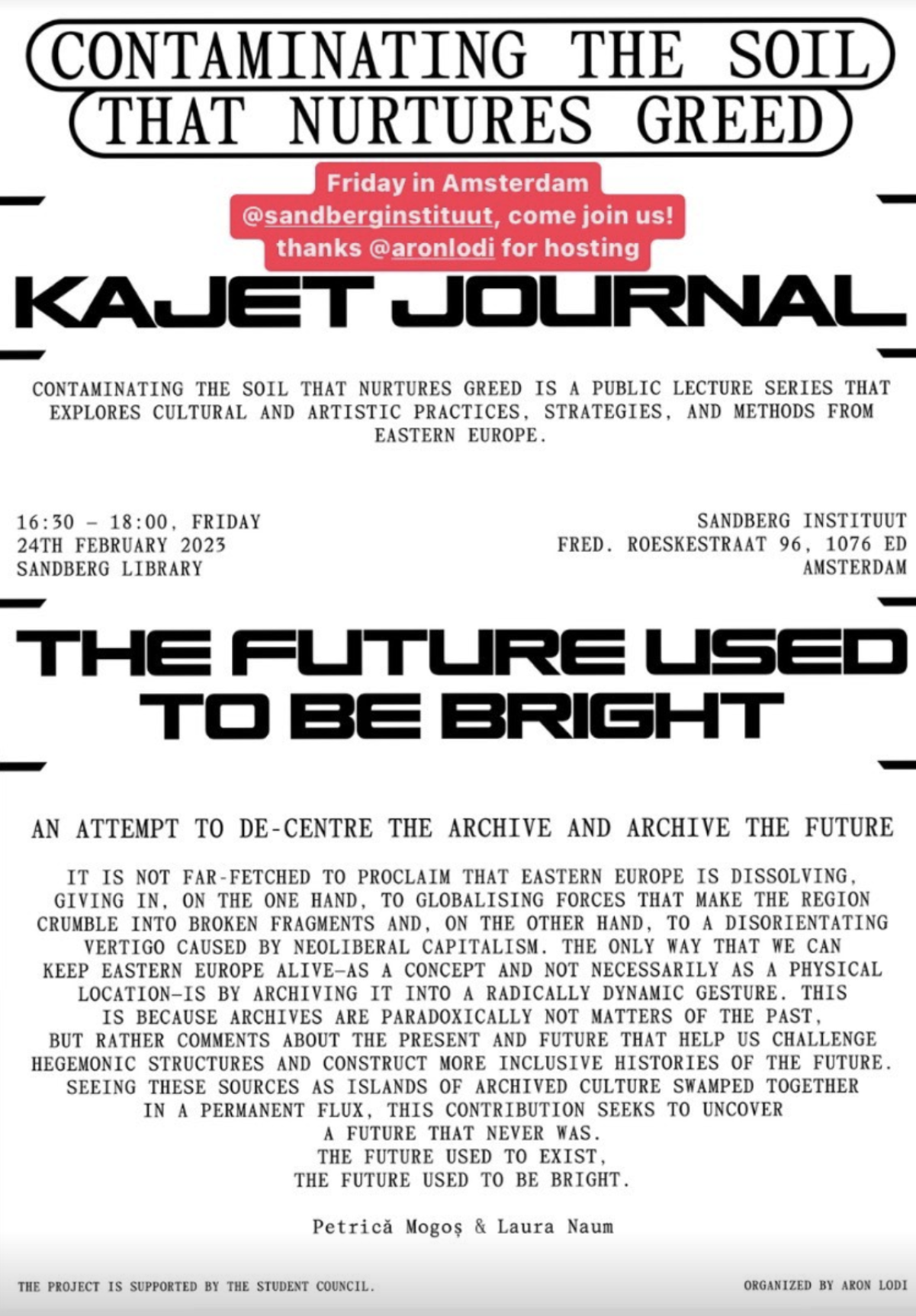 'Contaminating the soil that nurtures greed' is a public lecture series that explores cultural and artistic practices, strategies, and methods from Eastern Europe. The second lecture is on 24 February, 16.30 hrs at the Library
