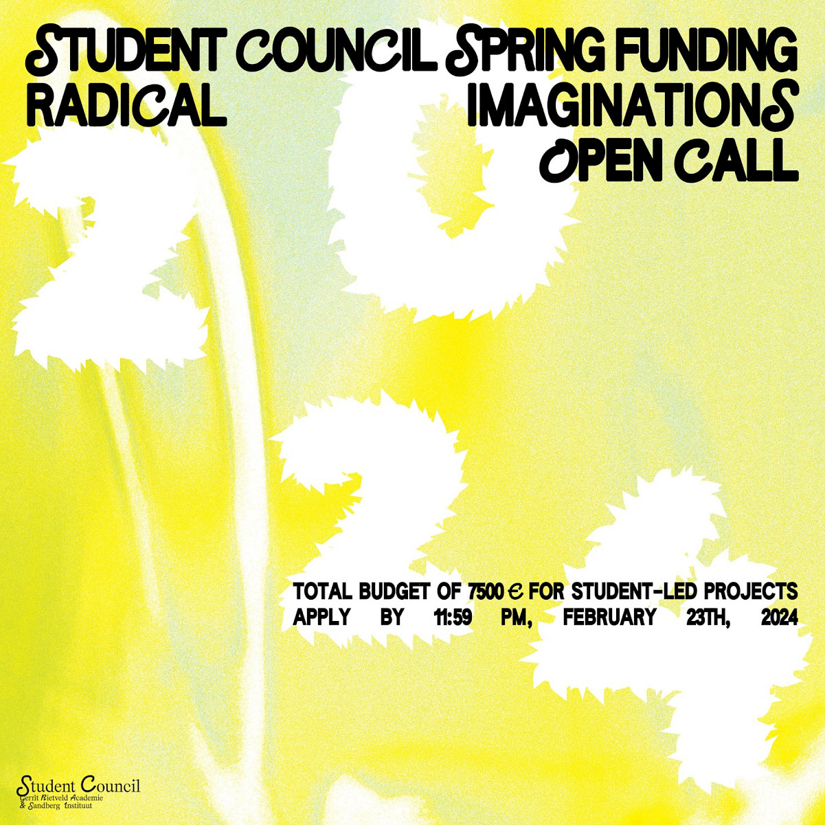 Student Council Rietveld Academie & Sandberg Instituut has 10,000euros to give away for funding! Don't forget to apply!