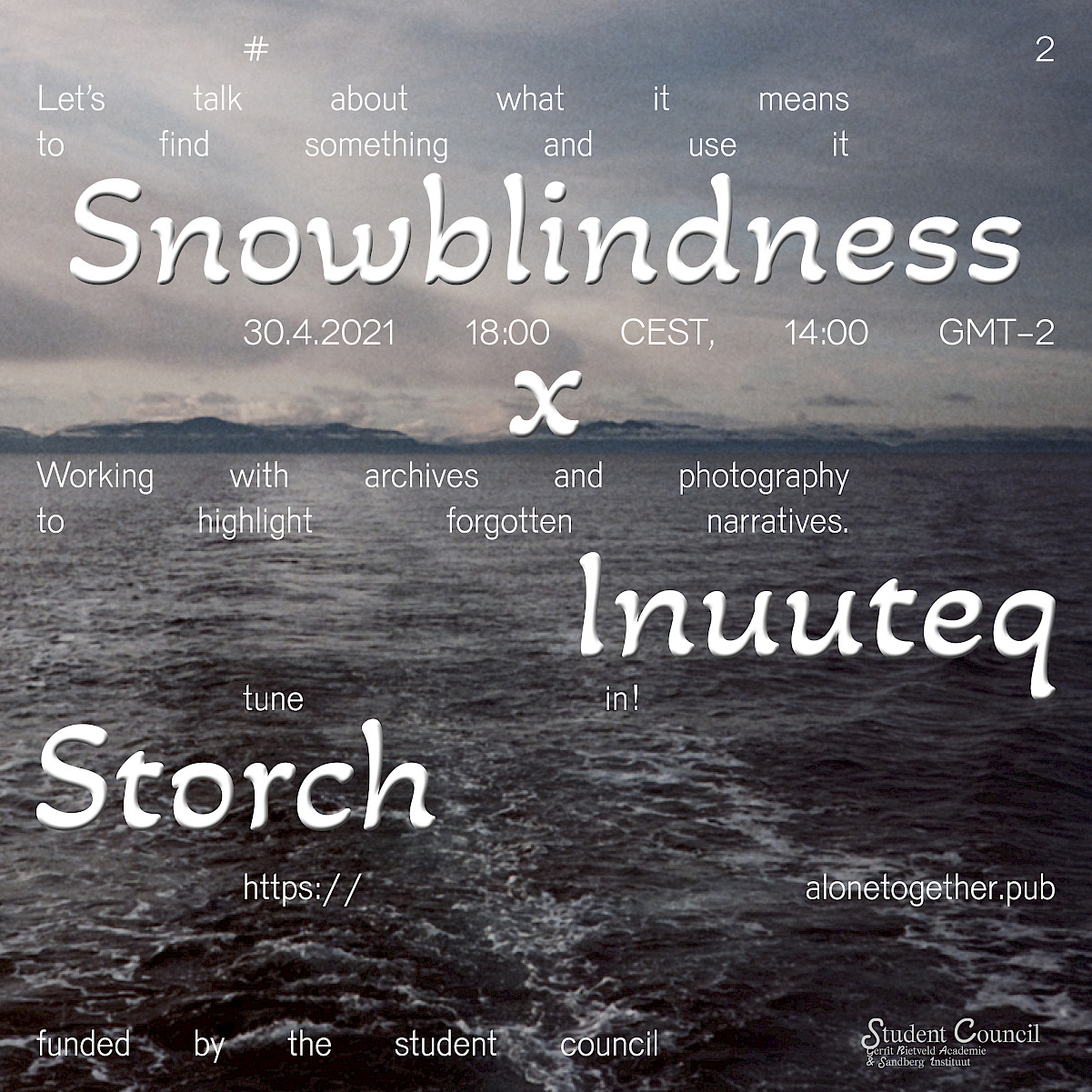 Snowblindness Podcast Series is part of a research-project by Gudrun Havsteen-Mikkelsen in collaboration with Anna Bierler exploring different narratives on colonial pasts and myth-making in relation to a contemporary design practice. Snowblindness' tries to reflect on the methodologies in a design discipline; how to get access to information, how to make material public and finally how to edit, debate and visualize ’collective memory’ in- and outside the work. The Snowblindness research is situated in colonial moments in Greenland, where Gudrun's great-grandfather was a Danish explorer, scientist, captain and colonizer, who marked his agenda in books, maps and people, and contributed to collective memory.
