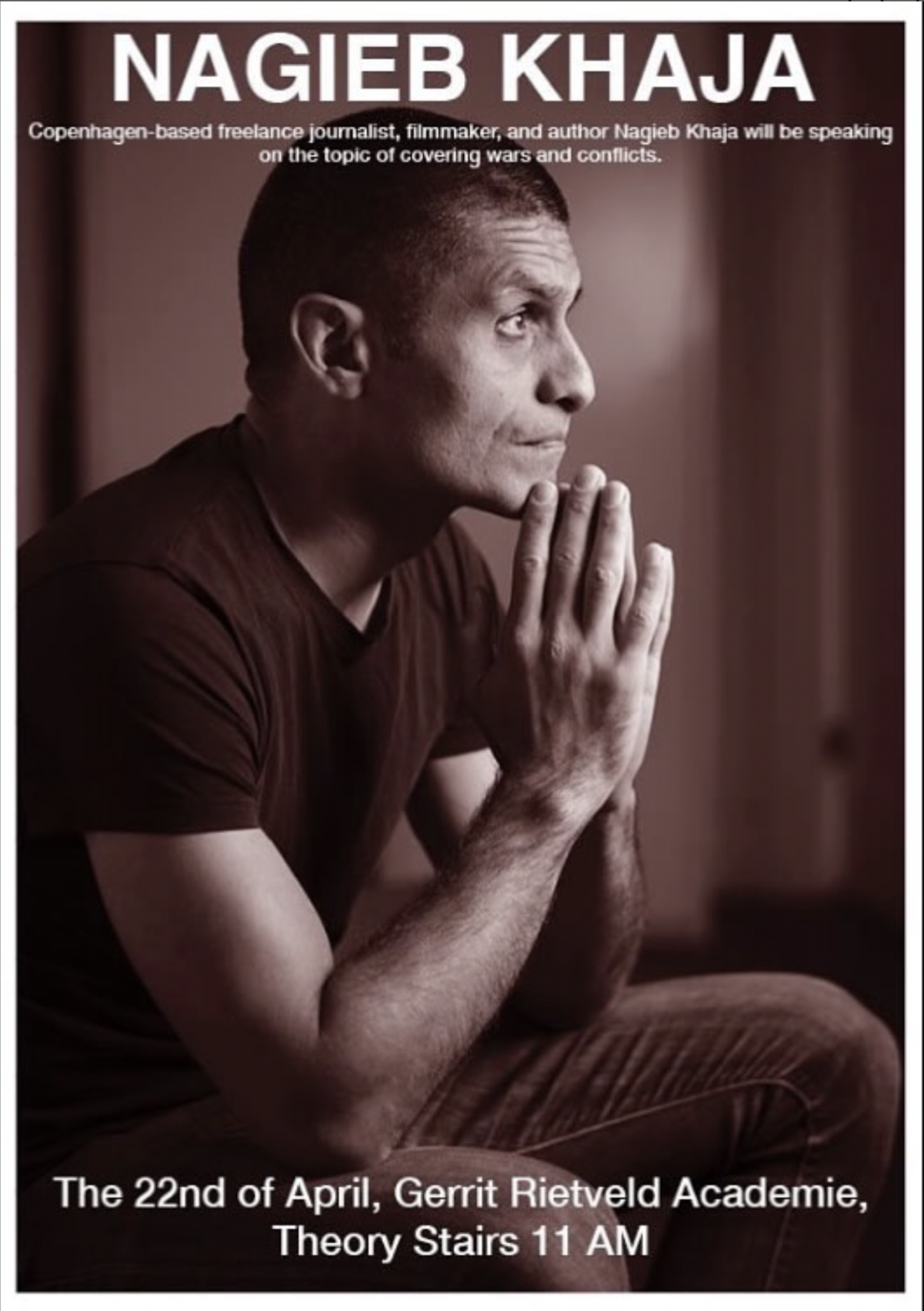 Filmmaker, author and journalist Nagieb Khaja is giving a lecture about covering wars and conflicts the 22nd of April at Gerrit Rietveld Academie, theory stairs 11:00 AM.