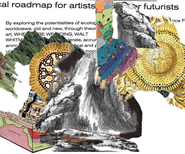 By exploring the potentialities of ecological worldviews, old and new, through theory and art, WHERE ARE WE GOING, WALT WHITMAN? seeks to accelerate, accumulate, animate and activate our poetical and political understanding of the world. The project will not map a North, South, East, West. No upside, no downside, no center, no periphery, no order, no border. It rather reveals a meshwork of criss-cross paths, rhythms, and flows. It wants to be a guide for self-learners wishing to think freely and critically about and through art and 'a thousand ecologies'.