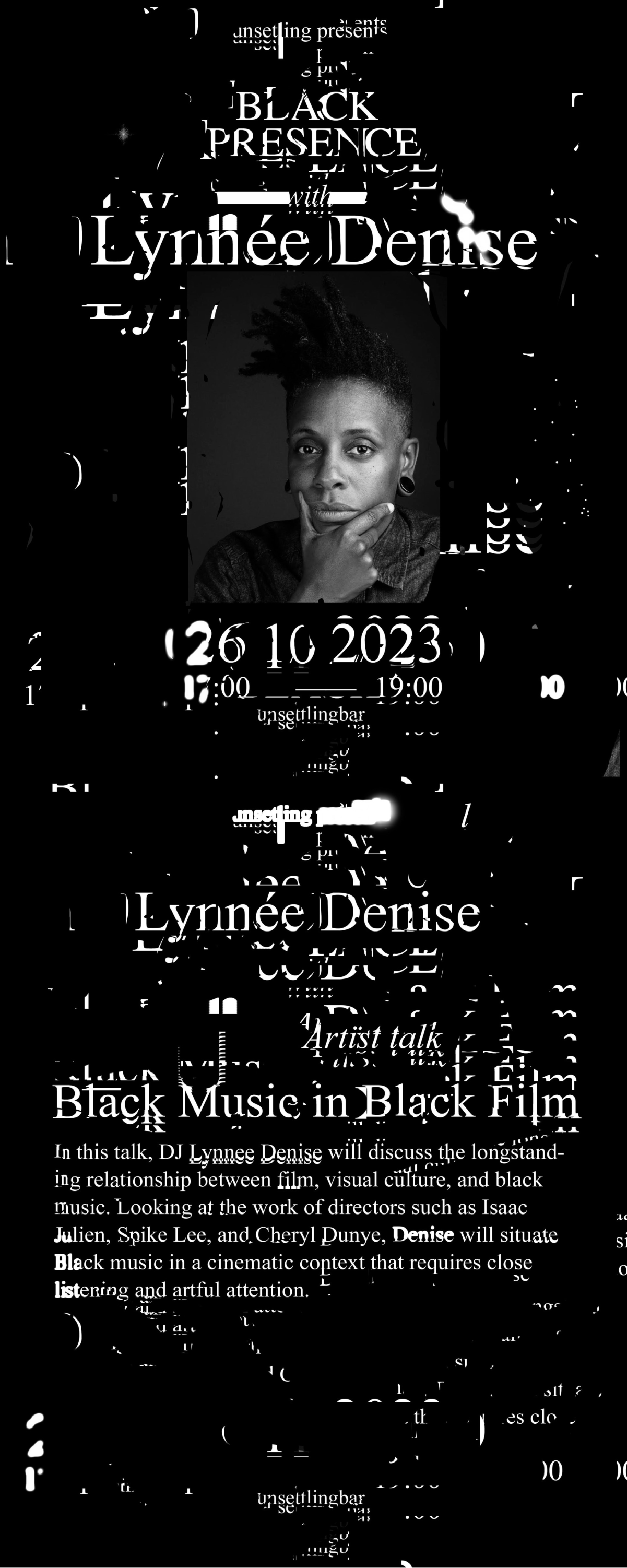 In this talk, DJ Lynneé Denise will discuss the longstanding relationship between film, visual culture, and black music. Looking at the work of directors such as Isaac Julie, Spike Lee, and Cheryl Dunye, Denise will saturate Black music in a cinematic context that requires close listening and artful attention.