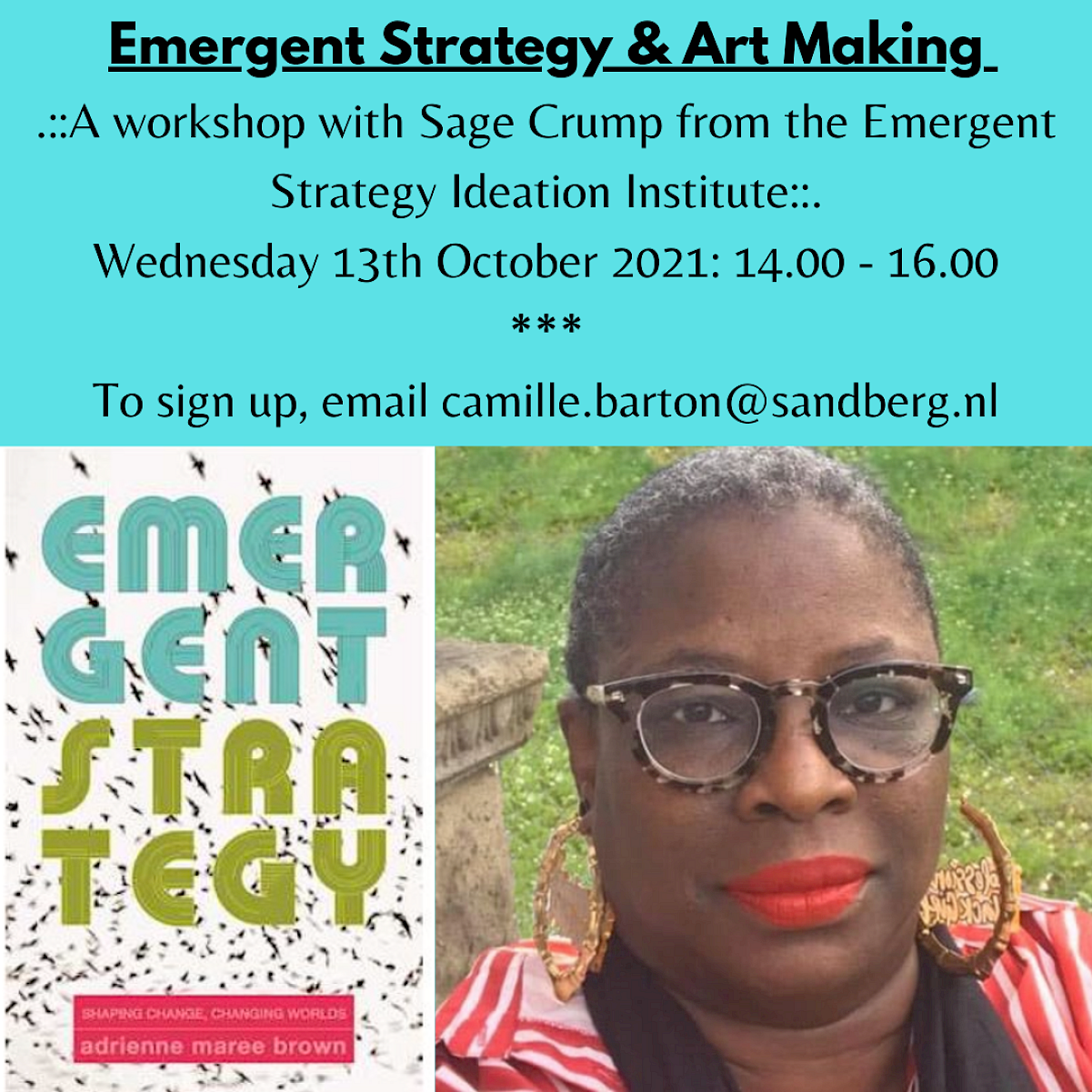 Are you interested in Emergent Strategy and how these principles can be applied to art making? This Wednesday, October 13 from 14:00 - 16:00, there is an opportunity to join the participants of Ecologies of Transformation for a workshop with Sage Crump of the Emergent Strategy Ideation Institute (ESII). Sage is an artist, culture strategist and facilitator who expands and deepens the work of cultural workers/arts organisations in social justice organising.