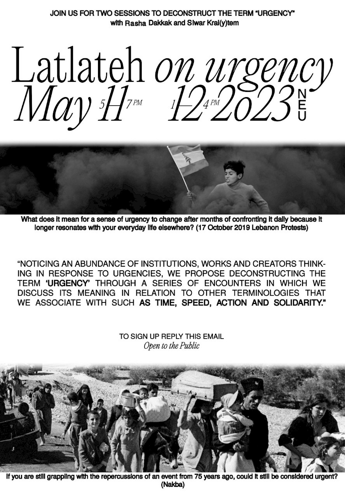 2 SESSIONS to deconstruct the term ‘URGENCY’ with Siwar Krai(y)tem and Rasha Dakkak.